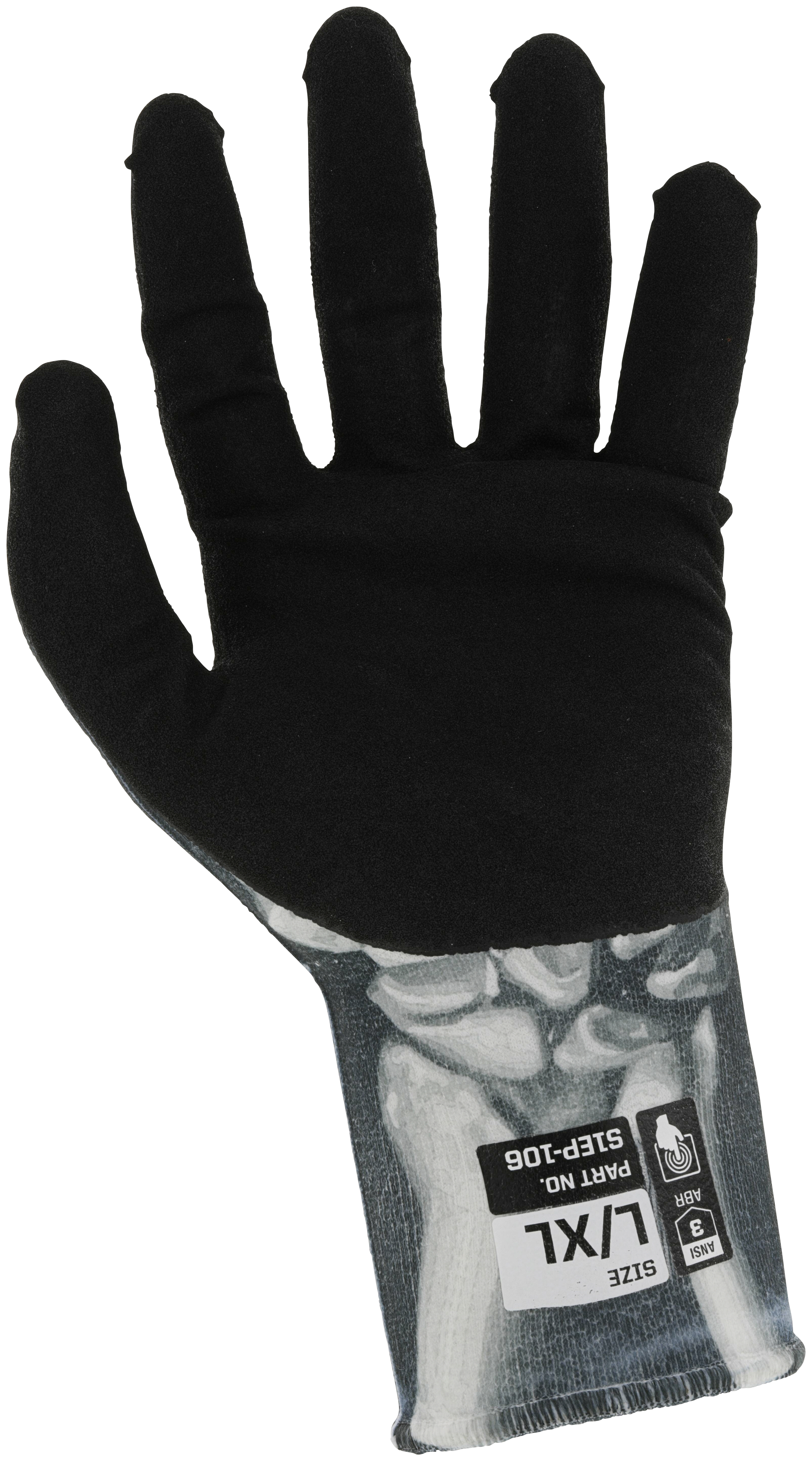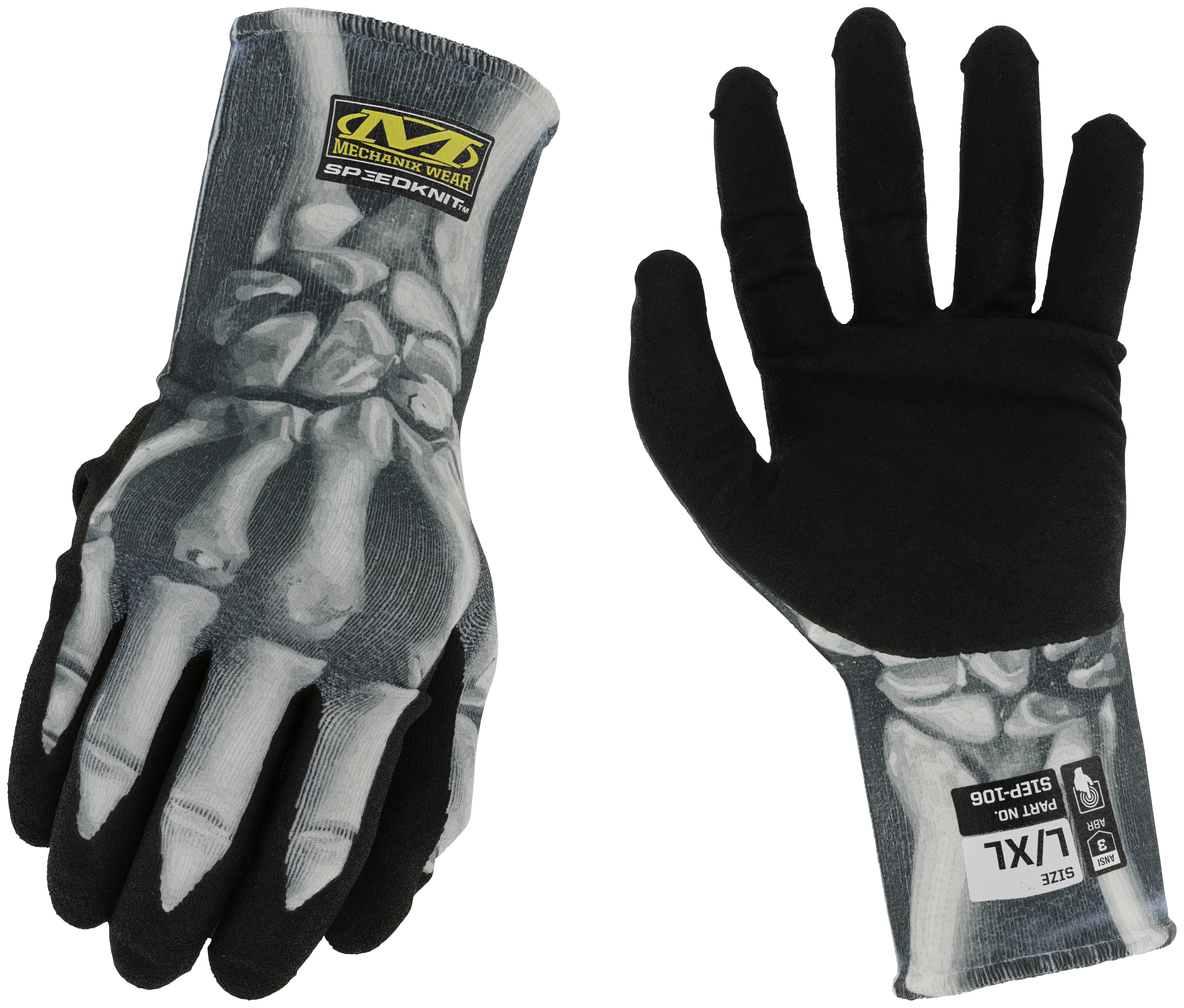 SpeedKnit™ Graphx™ Bones work gloves are constructed with a seamless 18-gauge nylon shell to protect your hands without compromising dexterity and control. The palm features touchscreen capable sandy nitrile palm coating providing durable gripping power in dry, wet and oily conditions. With an artistic skeleton bone design on the back of the hand, this glove combines proven glove performance with personalized style for a custom look, so you can work with attitude™.