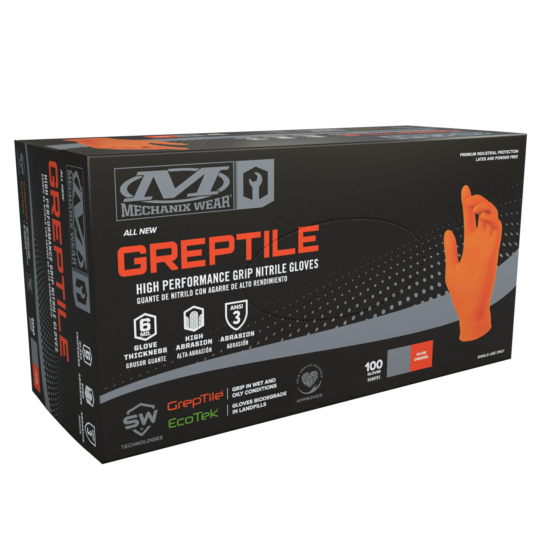 6 Mil Greptile Orange Nitrile Gloves 100-BX