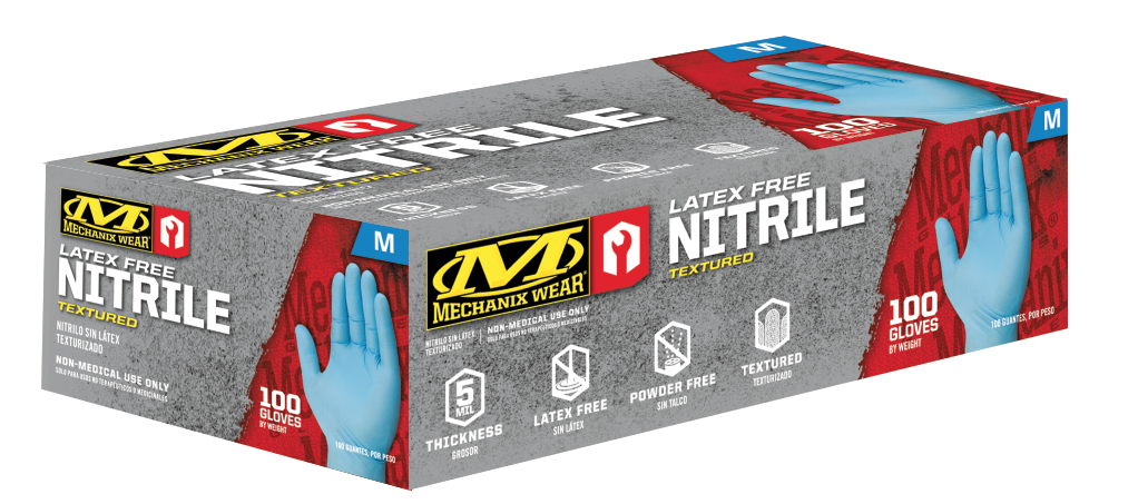 Mechanix Wear 5 mil Nitrile Disposable Gloves are powder-free and provide light protection from dirt, grease, oil and chemicals during messy jobs. Textured grip throughout the palm and fingers insures you’ll have traction with your tools no matter what you’re working on.