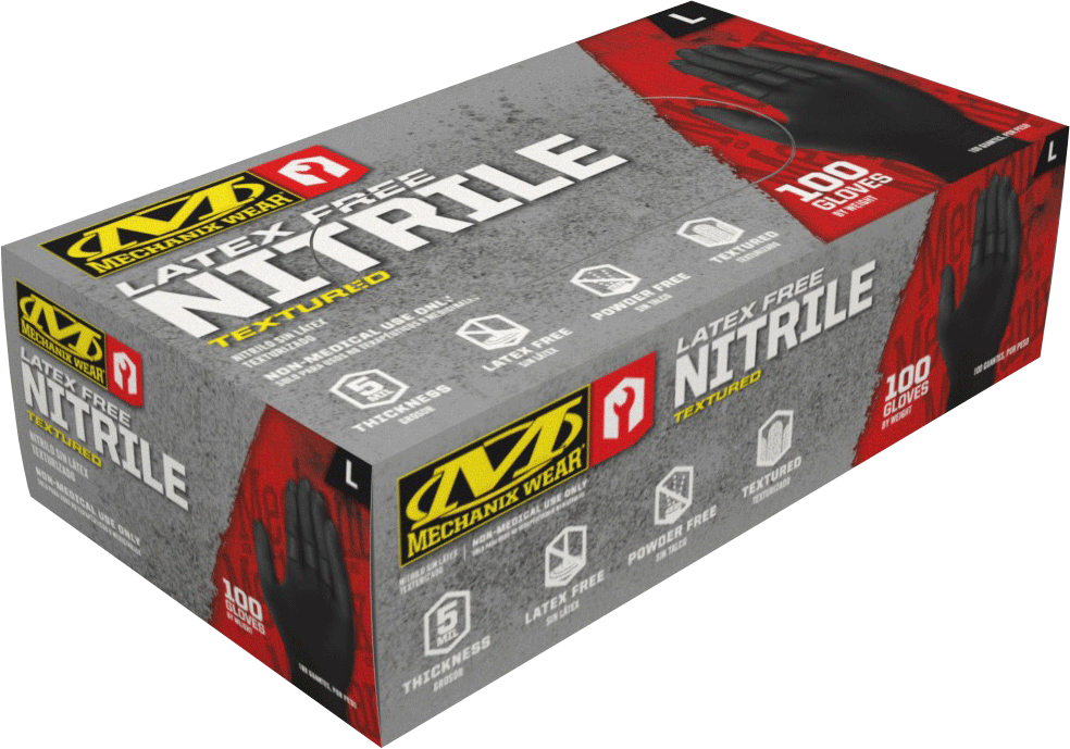 Mechanix Wear 5 mil Nitrile Disposable Gloves are powder-free and provide light protection from dirt, grease, oil and chemicals during messy jobs. Textured grip throughout the palm and fingers insures you’ll have traction with your tools no matter what you’re working on.