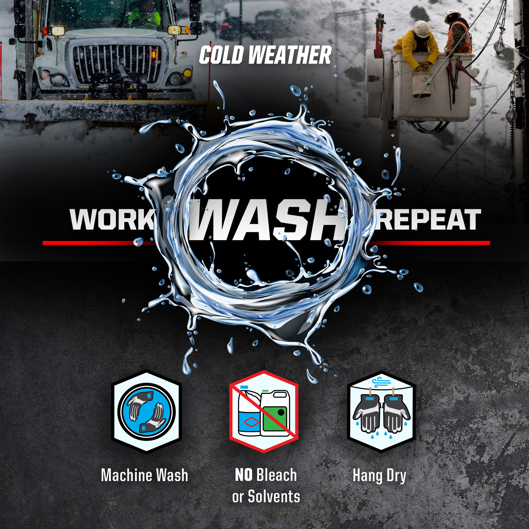 When the cold front moves in, reach for a pair of Winter Impact cold weather gloves to beat the elements. Comfortable micro-fleece lines the entire glove and 40g 3M™ Thinsulate™ traps warm air to help regulate your body temperature in the brisk cold air. Rugged water-resistant polyester combined with an internal waterproof membrane helps keep working hands dry in rain, sleet and snow.