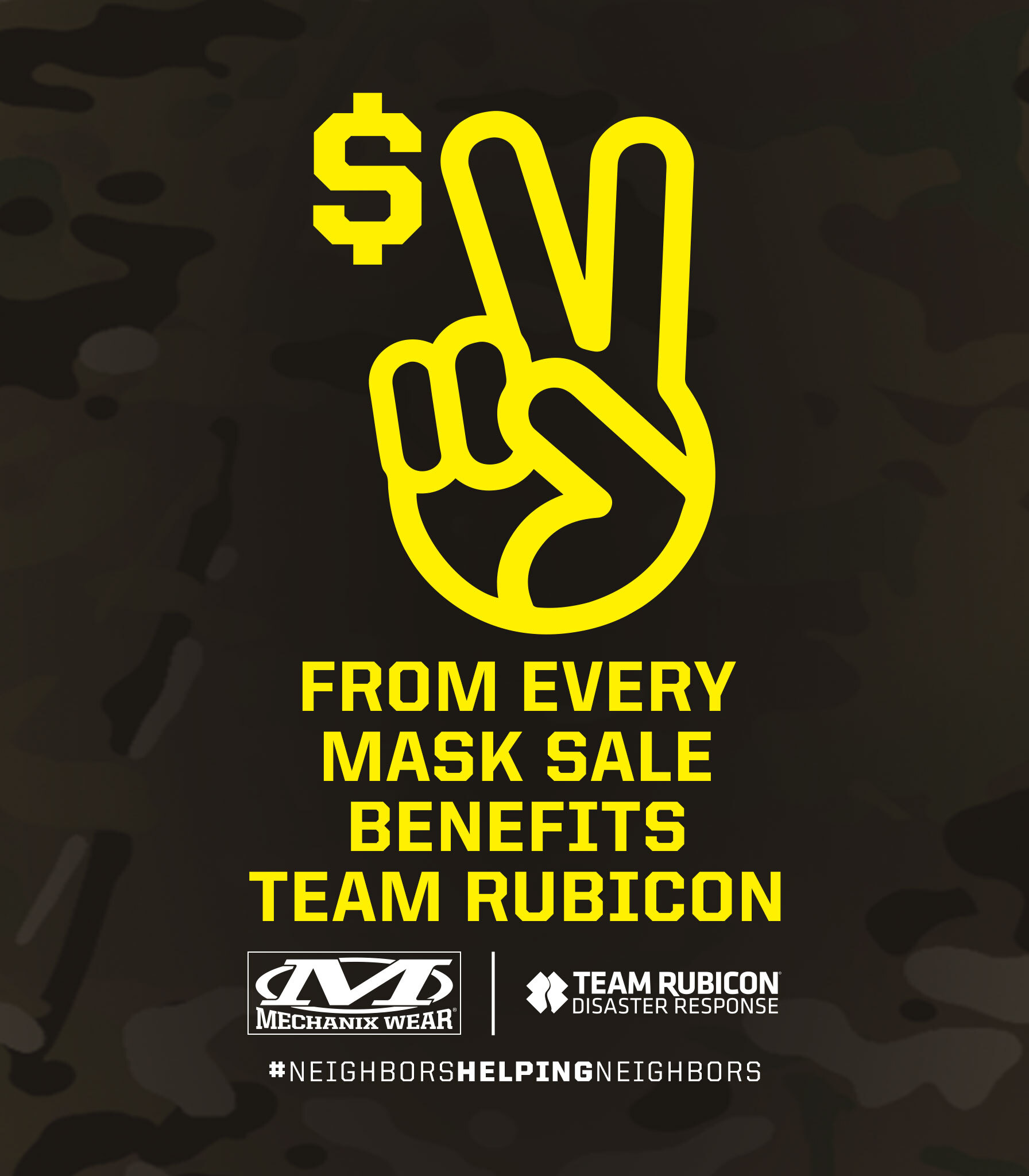 Mechanix Wear and Team Rubicon are working together to fight the spread COVID-19 in support of #NeighborsHelpingNeighbors. A veteran-led volunteer effort to help those affected by the coronavirus. $2 from every MultiCam® Mask sale directly benefits Team Rubicon and their deployment across the country. Our MultiCam Face Mask is constructed with durable CORDURA® NYCO and made in the USA.