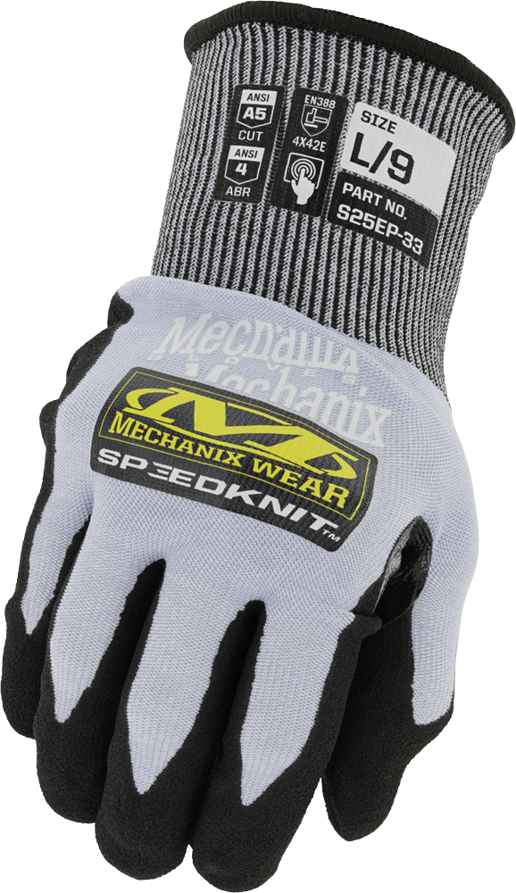 Crafted with an 18-gauge HPPE blended shell, the SpeedKnit™ S25EP33 provides supreme cut protection without sacrificing sensitivity or fit. Featuring a sandy nitrile palm coating with a reinforced thumb saddle this glove maintains grip in oily and wet work conditions and is ANSI cut level A5 and ANSI abrasion level 4 certified.