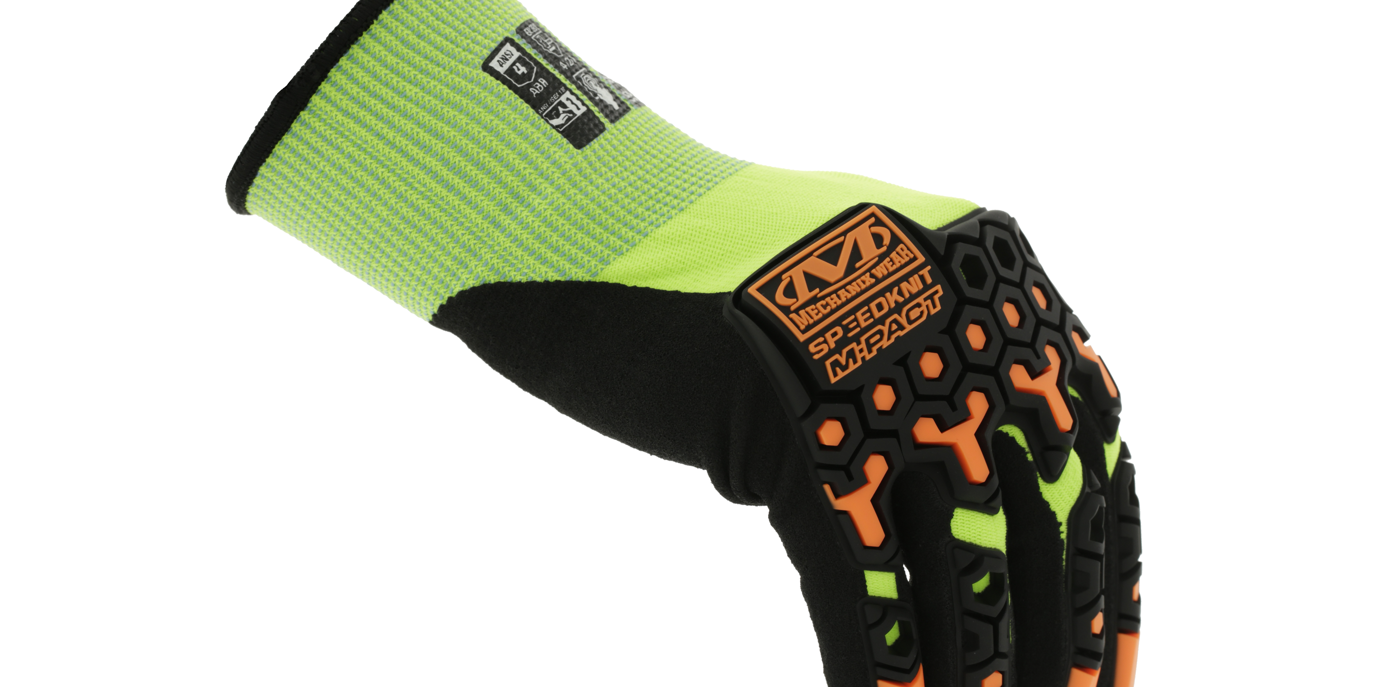 SpeedKnit™ M-Pact® Hi-Viz S5DP91 Our SpeedKnit™ M-Pact® Hi-Viz S5DP91 work gloves are designed to protect working hands with a combination of functional impact resistance and proven abrasion resistance. We use a machine-knit blend of 15-gauge nylon coated with sandy nitrile to achieve ANSI Level 4 abrasion resistance. Our ergonomically designed TPR is sonic welded for a seamless fit and ANSI Level 1 impact resistance.