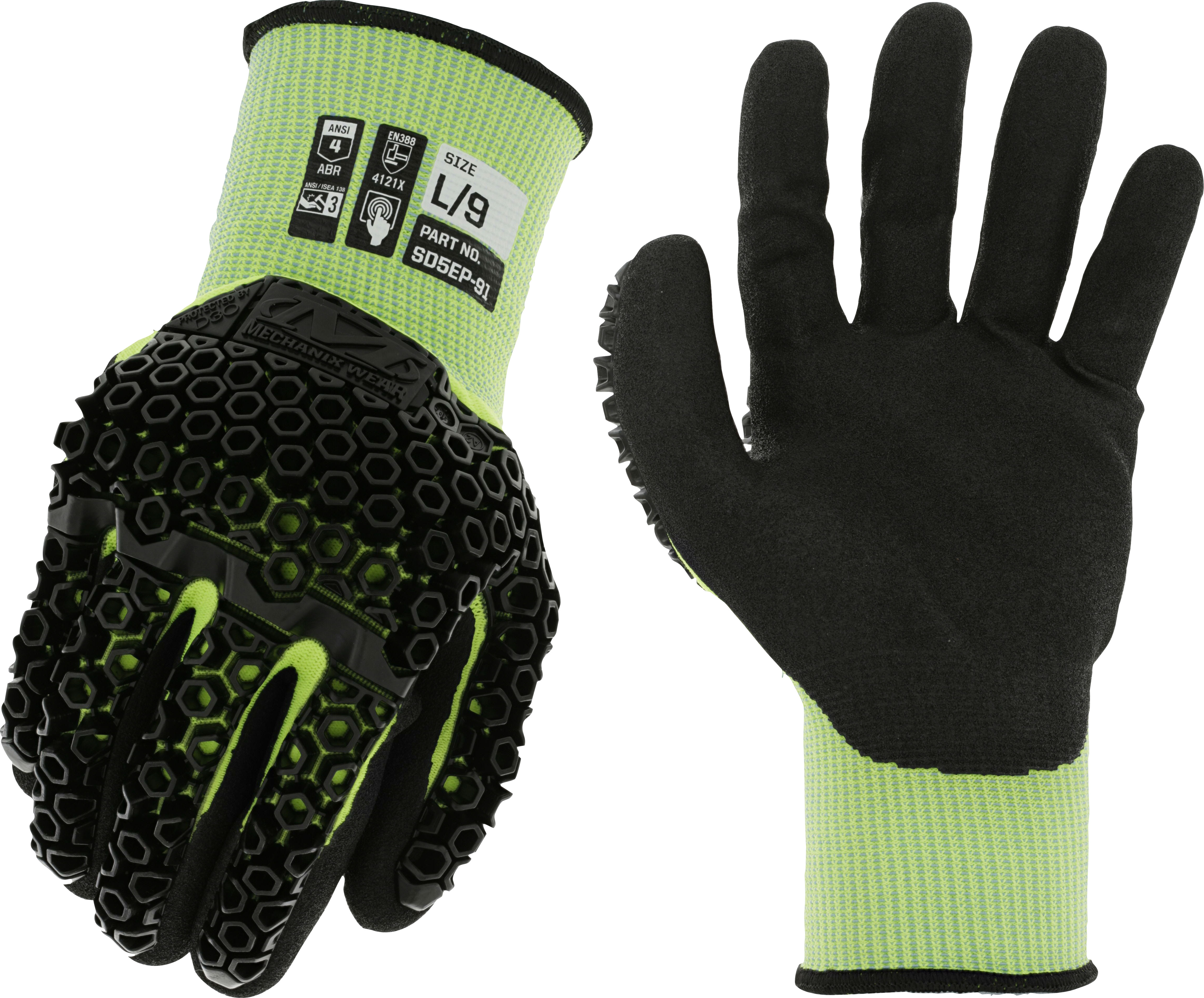 SpeedKnit™ Hi-Viz M-Pact® D3O® SD5EP91 Our SpeedKnit™ Hi-Viz M-Pact® SD5EP91 protected by D3O Impact Print™ technology is the first glove of its kind to achieve ANSI Level 3 impact resistance with unrivaled dexterity and best in class coverage. We use a machine-knit blend of 15-gauge hi-vis nylon for high visibility and sandy nitrile palm coating to achieve ANSI Level 4 abrasion resistance.