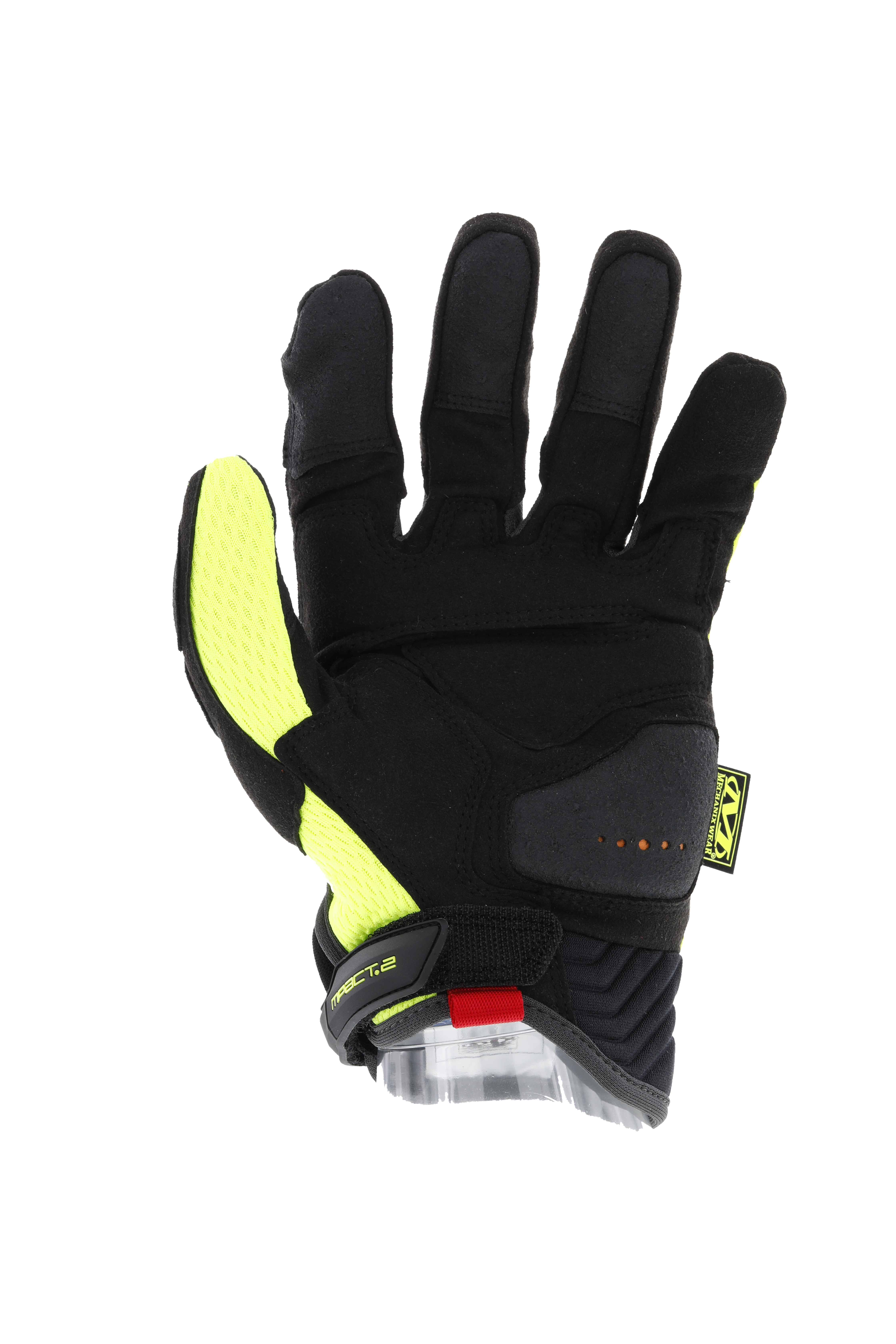 Hi-Viz M-Pact® 2 work gloves protect working hands with full-coverage impact resistance and eye-catching luminance. The Hi-Viz M-Pact® 2 delivers updated protection to the fingers and knuckles and improved palm features that allow you to work smarter not harder. The M-Pact® 2 incorporates ARIAPRENE® COR foam, EVA foam padding and Thermoplastic Rubber (TPR) across the fingers and knuckles for enhanced protection against blunt force impact. A re-designed dual layer palm built with EVA foam padding and D3O® Aero for protection and Padlock™ Silicone grip for increased durability and grip.