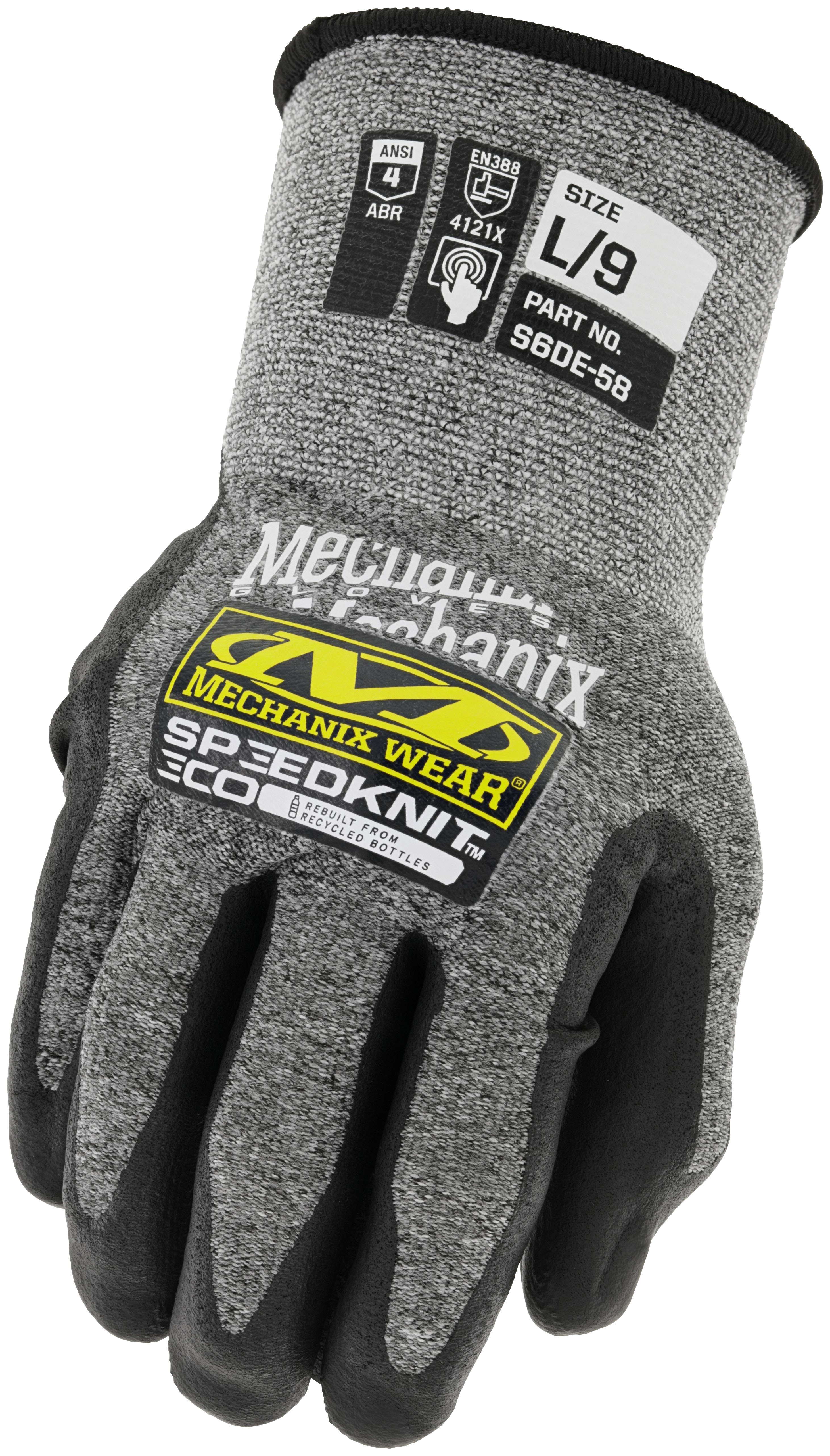 Our Speedknit™ Eco S6DE58 general purpose gloves are rebuilt hand protection you can feel good about wearing. Each pair contains one recycled PET plastic bottle, helping to keep plastic waste out of landfills and the natural environment. We use machine-knit blend nylon/spandex to create a 15-gauge glove that maintains feel, and offers the highest dexterity and abrasion protection for working hands.