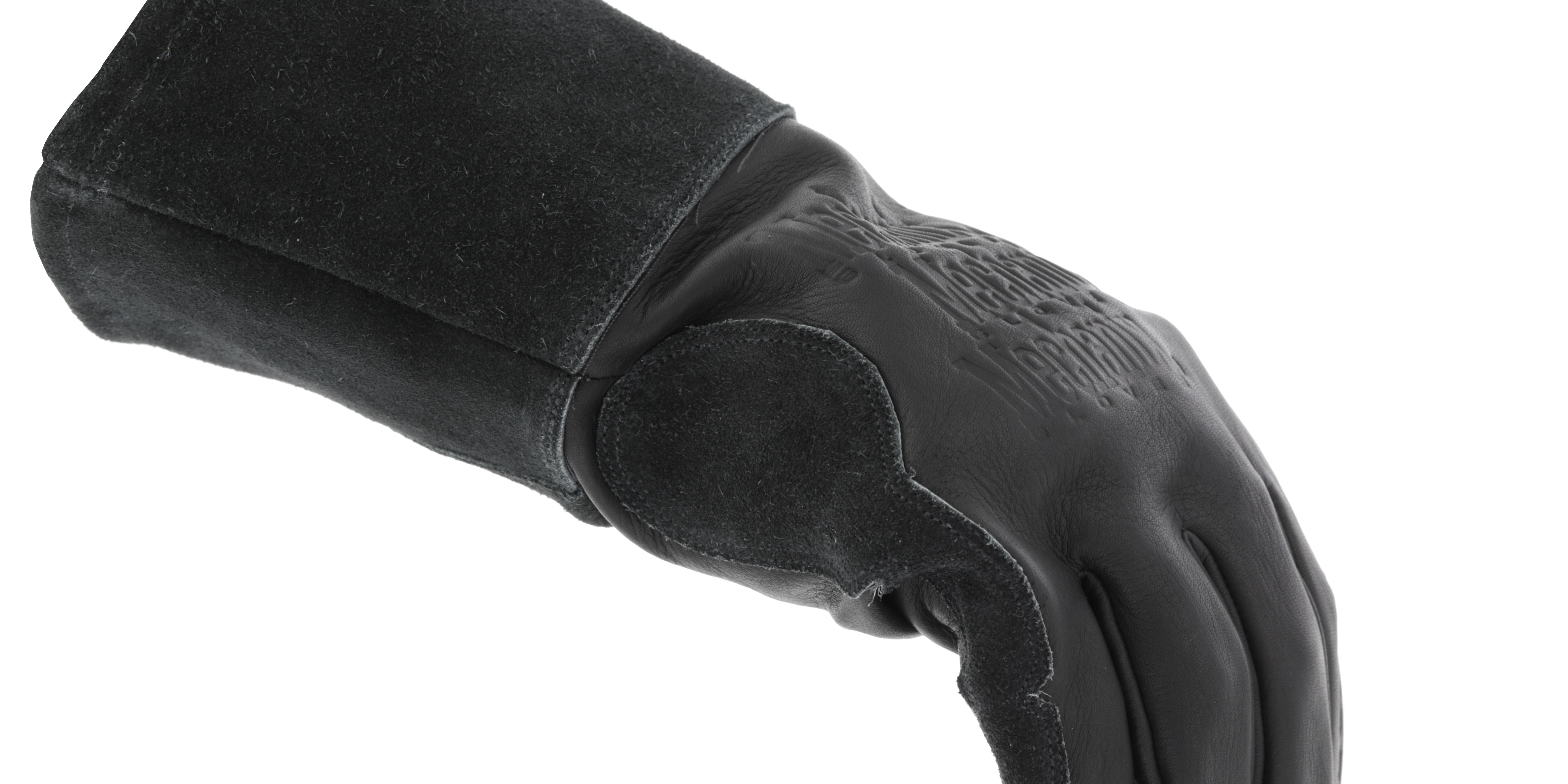 - Cowhide gauntlet cuffs protect against welding slag.