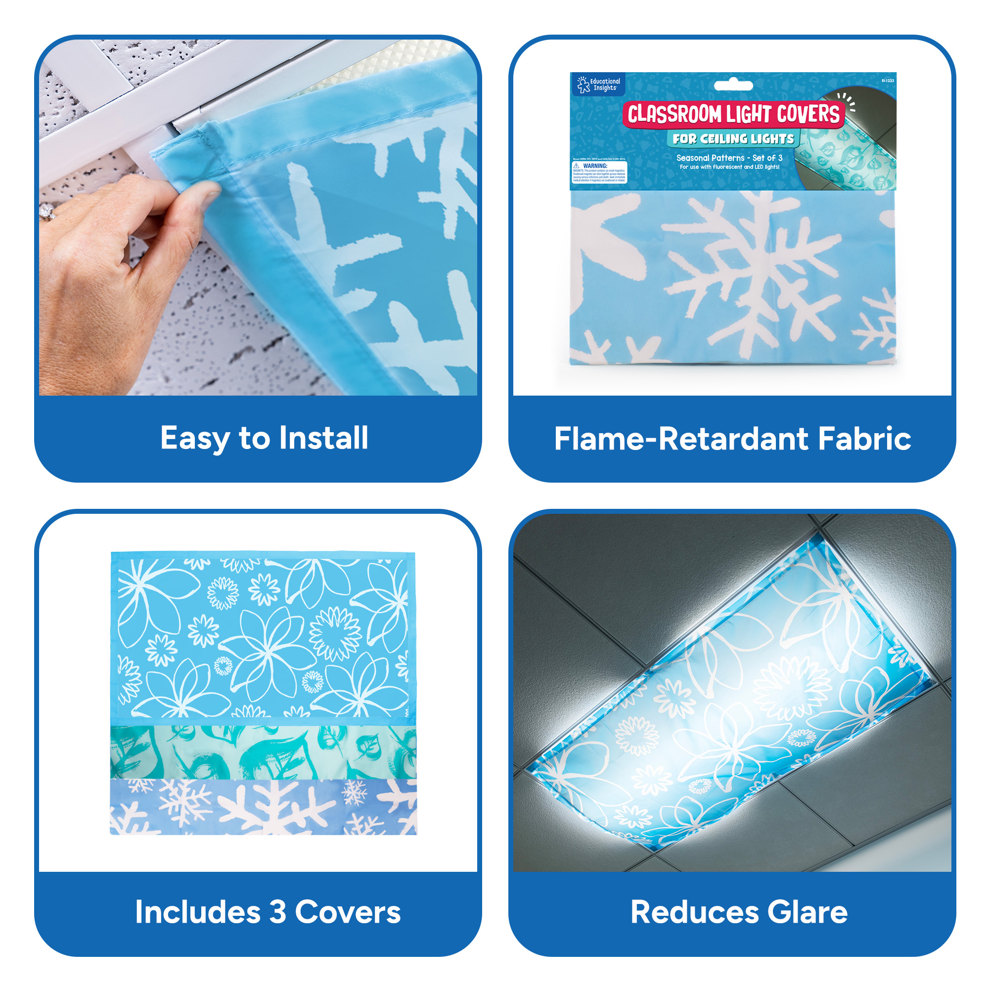 SKU 1233 Product Title LIGHT FILTERS FOR EVERY SEASON Brand Name Educational Insights UPC 086002012333 Piece Count 0 Min Target Age 0 Max Target Age 0 ProductCategoryProductLine Light Filters ProductCategorySubject Classroom Resources Port of Exit VNSGN Country of Origin VNM Unit Height 0.9 Unit Length 11 Unit Weight 0.75 Unit Width 6.7 Long Description - DC Eliminate the harsh, headache-inducing glare and flicker from typical fluorescent lighting with three beautifully designed seasonal Light Filters representing fall, winter, and spring/summer! Each 2’ x 4’ panel in this set of three features magnetic corners that attached easily to standard fluorescent ceiling fixtures. Perfect for creating a calming, soothing atmosphere in the classroom or the office. CA prop 65 No Case Height 8.5 Case Length 14.8 Case Quantity 32 Case Weight 26.05 CPQ 1.88 Includes Remote No Marble Warning No MSRP 37.99 Small Ball Warning No Small Parts Warning No