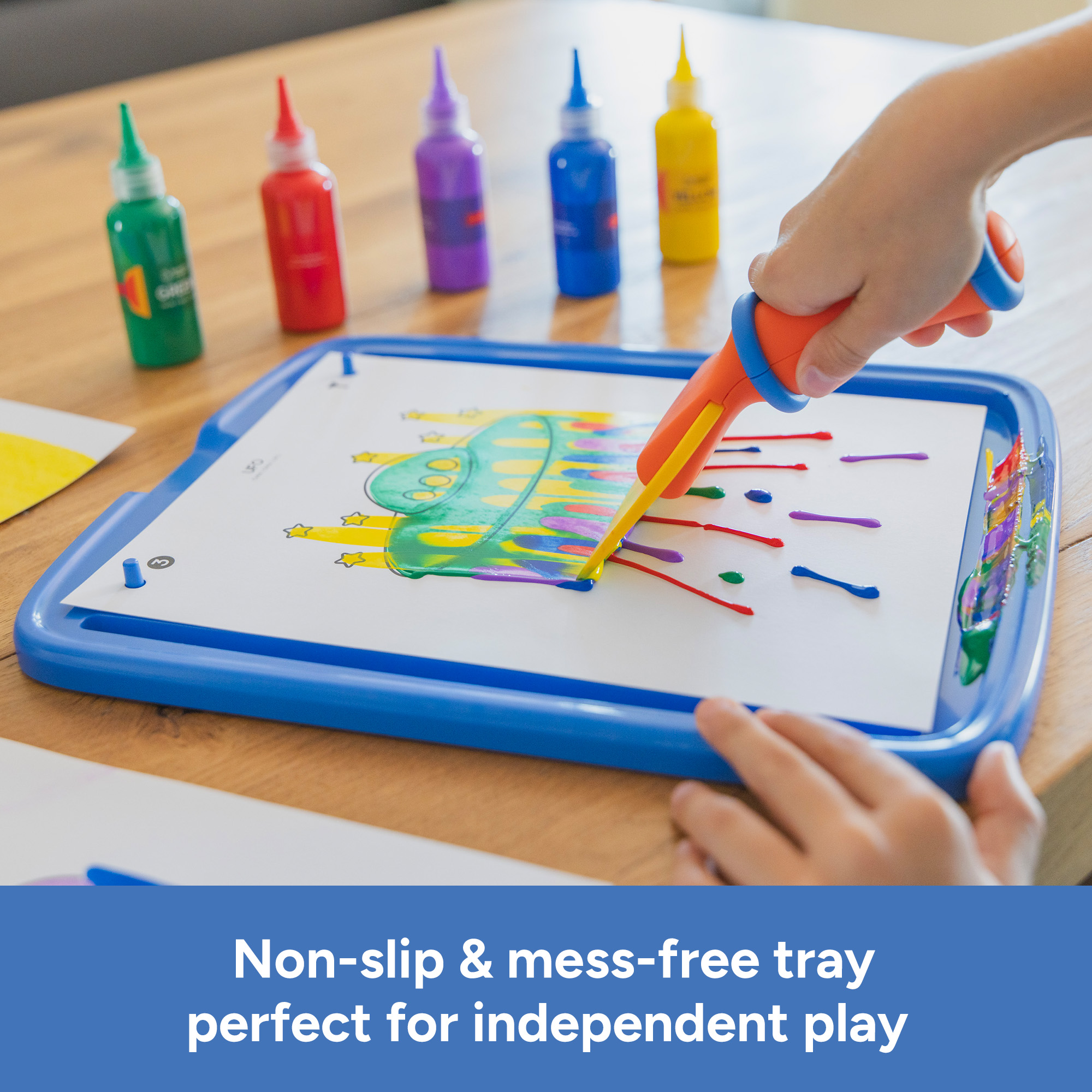 SKU 1565 Product Title Squeegee Art Kit Brand Name Educational Insights UPC 086002015655 Piece Count 47 Min Target Age 5 Max Target Age 99 TargetGradeMax Adult TargetGradeMin Kindergarten ProductCategoryProductLine Craft Line ProductCategorySubject Arts & Crafts Port of Exit CNYTN Country of Origin CHN Unit Height 11.1 Unit Length 3.5 Unit Weight 3.25 Unit Width 14.2 Long Description - DC Learn to make squeegee art with this all-in-one craft kit for kids! This set comes with guided templates and a mess-free tray for all the fun of paint crafts without the mess or clean up! Clip the canvas into the non-slip tray, add paint, then use the squeegee to reveal your design! Includes non-slip tray with clip, squeegee, 5 2 oz paint bottles, and 40 sheets of paper (20 with guides and 20 blank). For ages 5+. CA prop 65 No Case Height 12.1 Case Length 14.3 Case Quantity 4 Case Weight 14.45 CPQ 1.51 Includes Remote No Marble Warning No MSRP 22.99 Small Ball Warning No Small Parts Warning Yes