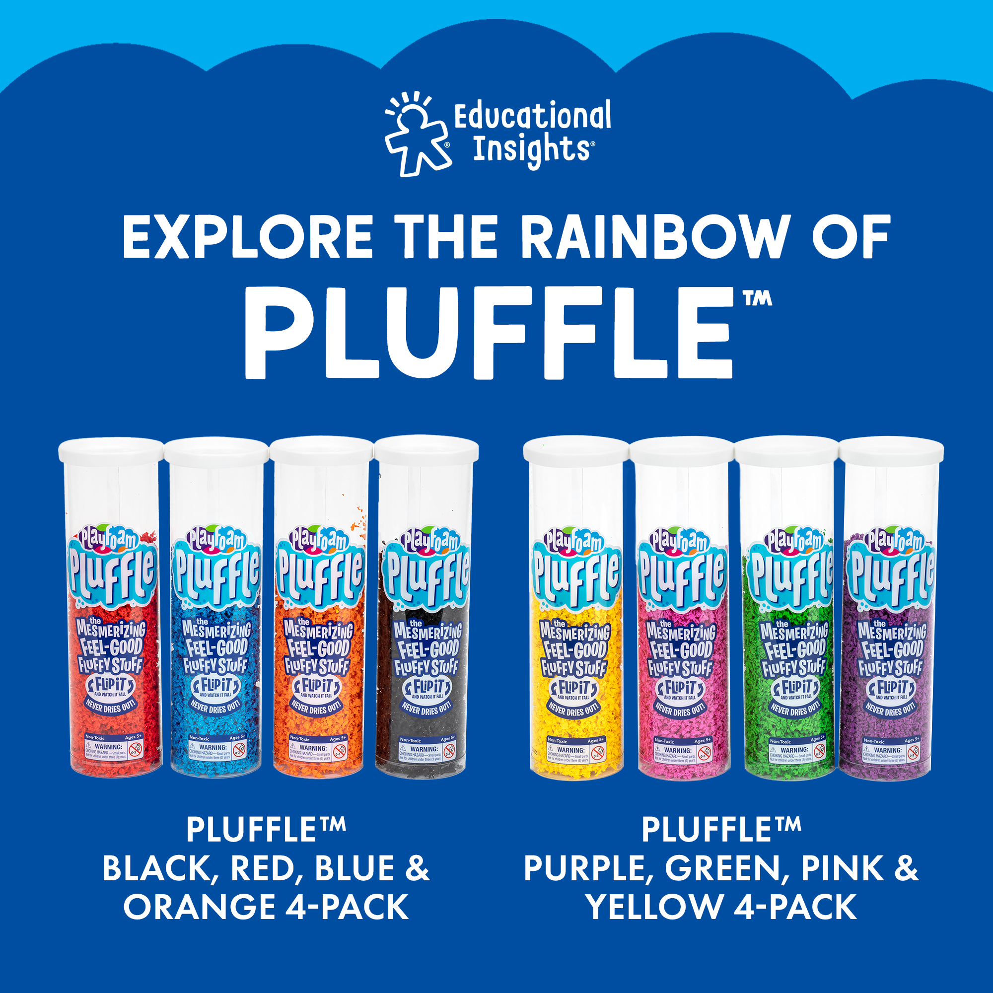 SKU 1942-D Product Title PLAYFOAM PLUFFLE 4PK RED/PNK/PURPLE/BLUE Brand Name Educational Insights UPC 086002007735 Piece Count 0 Min Target Age 3 Max Target Age 99 TargetGradeMax Adult TargetGradeMin Pre-K ProductCategoryProductLine Pluffle ProductCategorySubject Compounds Port of Exit TWKEL Country of Origin TWN Unit Height 5.1 Unit Length 5.9 Unit Weight 0.8 Unit Width 9.2 CA prop 65 No Case Height 10.7 Case Length 12.4 Case Quantity 6 Case Weight 5.95 CPQ 1.41 Includes Remote No Marble Warning No MSRP 33.99 Small Ball Warning No Small Parts Warning Yes