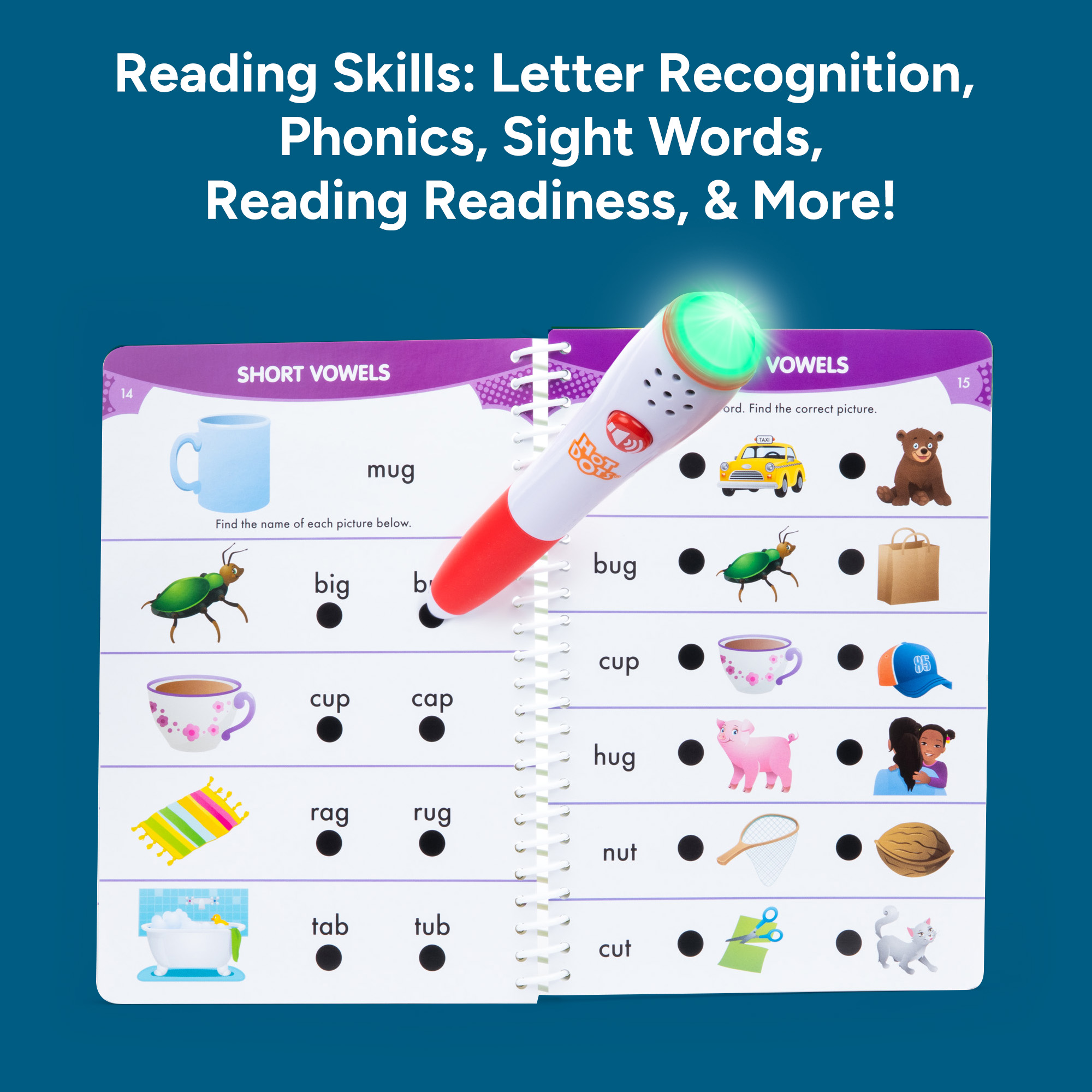 SKU 2391 Product Title HOT DOTS JR. LET'S MASTER KINDERGARTEN R Brand Name Educational Insights UPC 086002023919 Piece Count 0 Min Target Age 5 Max Target Age 9 TargetGradeMax Fourth Grade TargetGradeMin Kindergarten ProductCategoryProductLine Hot Dots ProductCategorySubject Workbooks & Kits Port of Exit CNYTN Country of Origin CHN Unit Height 1.9 Unit Length 9.1 Unit Weight 1.2 Unit Width 8.3 Long Description - DC These two-book sets with included Hot Dots Ace - The Talking, Teaching Dog pen provide children with 100 lessons on a variety of reading and language arts skills appropriate for kindergarten, from simple comprehension and vocabulary to spelling and punctuation. Fifteen of the 100 lessons are challenge activities that prepare children for skills at the next grade level. Includes two 50-page books, total of 100 lessons, Hot Dots pen, requires 2 AAA batteries (not included). CA prop 65 No Case Height 9.2 Case Length 12 Case Quantity 6 Case Weight 8 CPQ 0.62 Includes Remote No Marble Warning No MSRP 26.99 Small Ball Warning No Small Parts Warning No