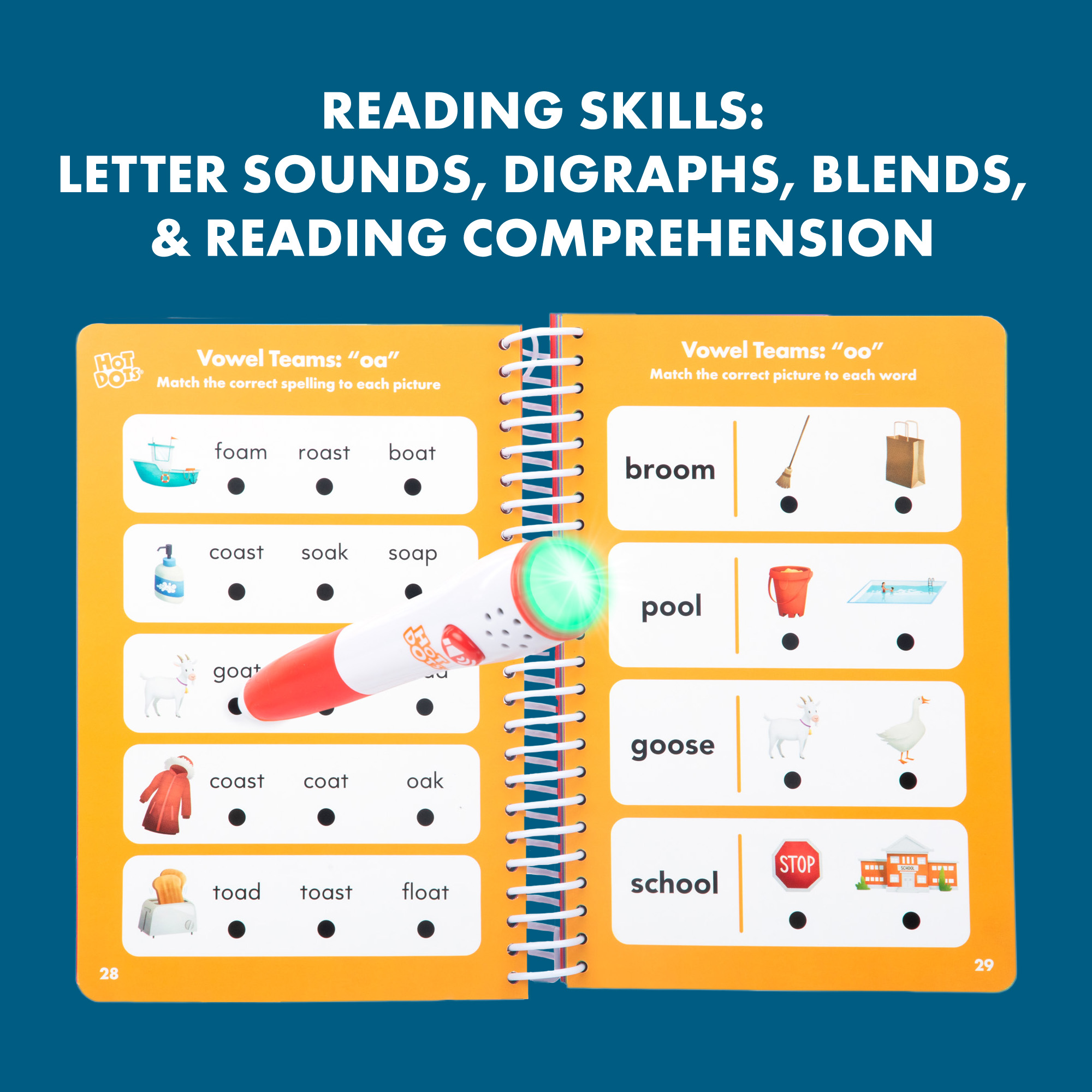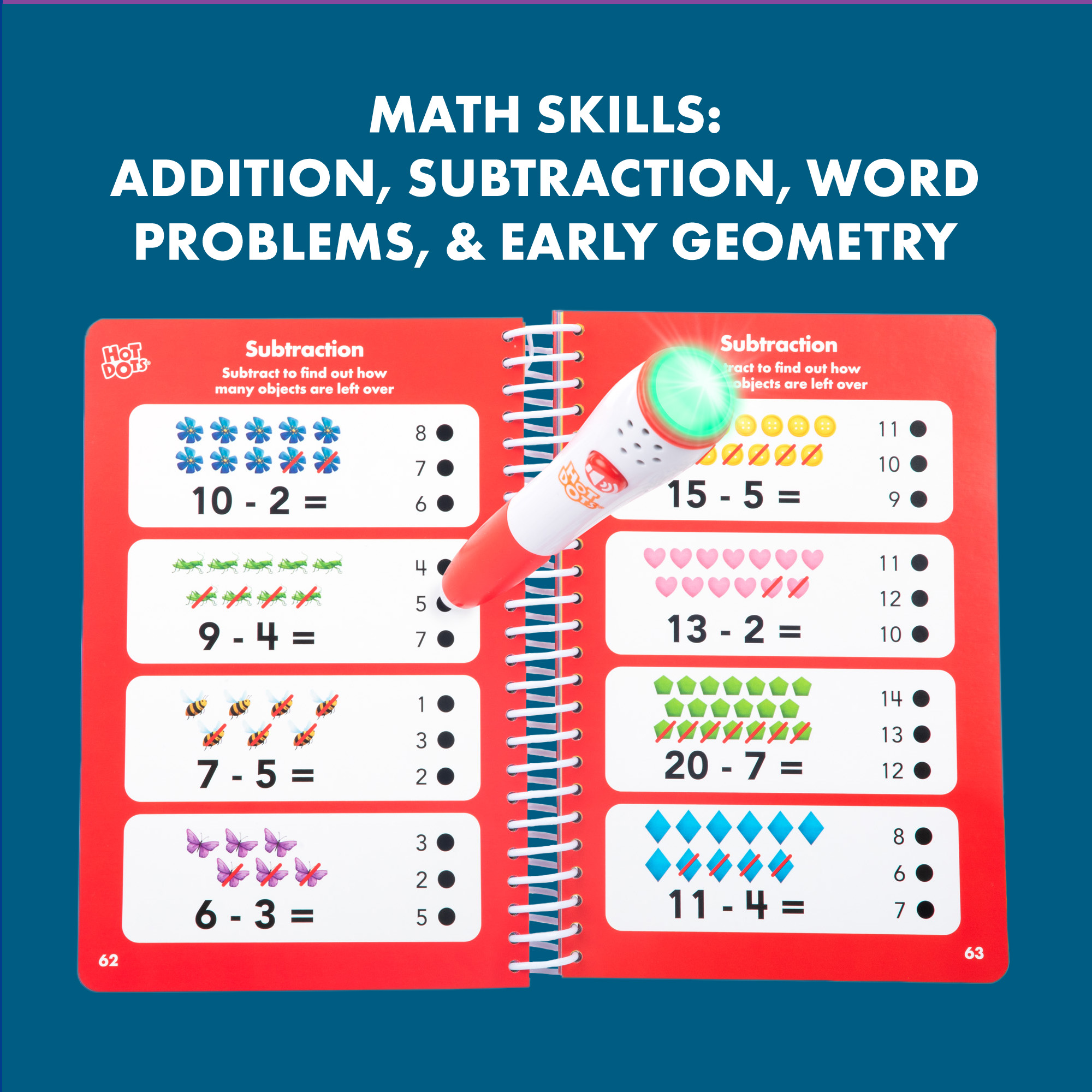 SKU 2444 Product Title HOT DOTS FIRST GRADE ESSENTIALS Brand Name Educational Insights UPC 086002024442 Piece Count 2 Min Target Age 6 Max Target Age 7 TargetGradeMax Second Grade TargetGradeMin First Grade ProductCategoryProductLine Hot Dots ProductCategorySubject Workbooks & Kits Port of Exit CNYTN Country of Origin CHN Unit Height 2.2 Unit Length 9 Unit Weight 1.1 Unit Width 8 Short Description - DC Independent learning really hits the spot with Hot Dots First Grade Workbook! Designed specifically for 1st graders by educational experts, this set features an interactive, electronic Hot Dots pen with light and sound effects (and a mute button for quiet learning) and 100 pages of standards-based, foundational 1st grade reading and math activities. Kids review colorful, illustrated questions, then press the pen to any answer dot for instant, confidence-boosting feedback. Long Description - DC Independent learning really hits the spot with Hot Dots First Grade Workbook! Designed specifically for 1st Graders by educational experts, this set features an interactive, electronic Hot Dots pen with light and sound effects (and a mute button for quiet learning) and 100 pages of standards-based, foundational 1st Grade reading and math activities. Kids review colorful, illustrated questions, then press the pen to any answer dot for instant, confidence-boosting feedback. And they can do it on their own! Kids can develop key skills, including letter and vowel sounds, addition, subtraction, and more, anywhere, anytime with this portable, self-paced, independent learning set. Hot Dots Pen requires 2 AAA batteries, not included. CA prop 65 No Case Height 9.2 Case Length 9.7 Case Quantity 6 Case Weight 7.55 CPQ 0.7 Includes Remote No Marble Warning No MSRP 26.99 Small Ball Warning No Small Parts Warning No