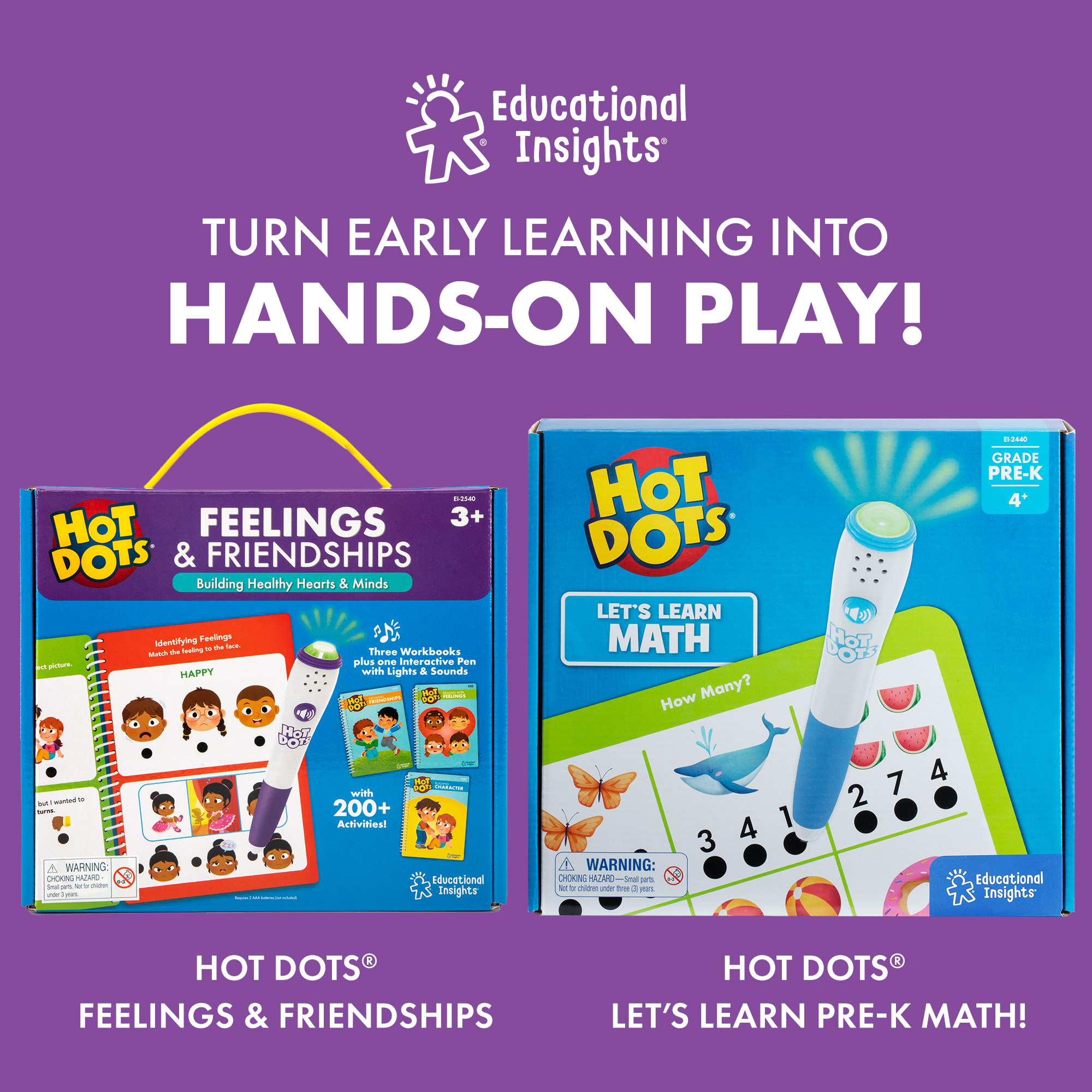 SKU 2445 Product Title HOT DOTS® LET'S LEARN PRE-K READING! Brand Name Educational Insights UPC 086002024459 Piece Count 1 Min Target Age 4 Max Target Age 5 TargetGradeMax Kindergarten TargetGradeMin Pre-K ProductCategoryProductLine Hot Dots ProductCategorySubject Workbooks & Kits Port of Exit CNYTN Country of Origin CHN Unit Height 1.6 Unit Length 10.4 Unit Weight 1.25 Unit Width 11.6 Short Description - DC Build reading readiness and confidence with 50 pages of reading activities covering a variety of reading skills beginning with letter recognition, rhyming and phonics, early comprehension and more. Use the included, interactive Hot Dots pen to receive positive feedback or gentle redirection—lights and sounds indicate right and wrong answers, enabling kids to learn and practice critical learning skills independently, at their own pace, at home, in the classroom, or on the go! Long Description - DC Build reading readiness and confidence with 50 pages of reading activities covering a variety of reading skills beginning with letter recognition, rhyming and phonics, early comprehension and more. Use the included, interactive Hot Dots pen to receive positive feedback or gentle redirection—lights and sounds indicate right and wrong answers, enabling kids to learn and practice critical learning skills independently, at their own pace, at home, in the classroom, or on the go! CA prop 65 No Case Height 11.5 Case Length 12.4 Case Quantity 6 Case Weight 8.65 CPQ 0.87 Includes Remote No Marble Warning No MSRP 26.99 Small Ball Warning No Small Parts Warning Yes
