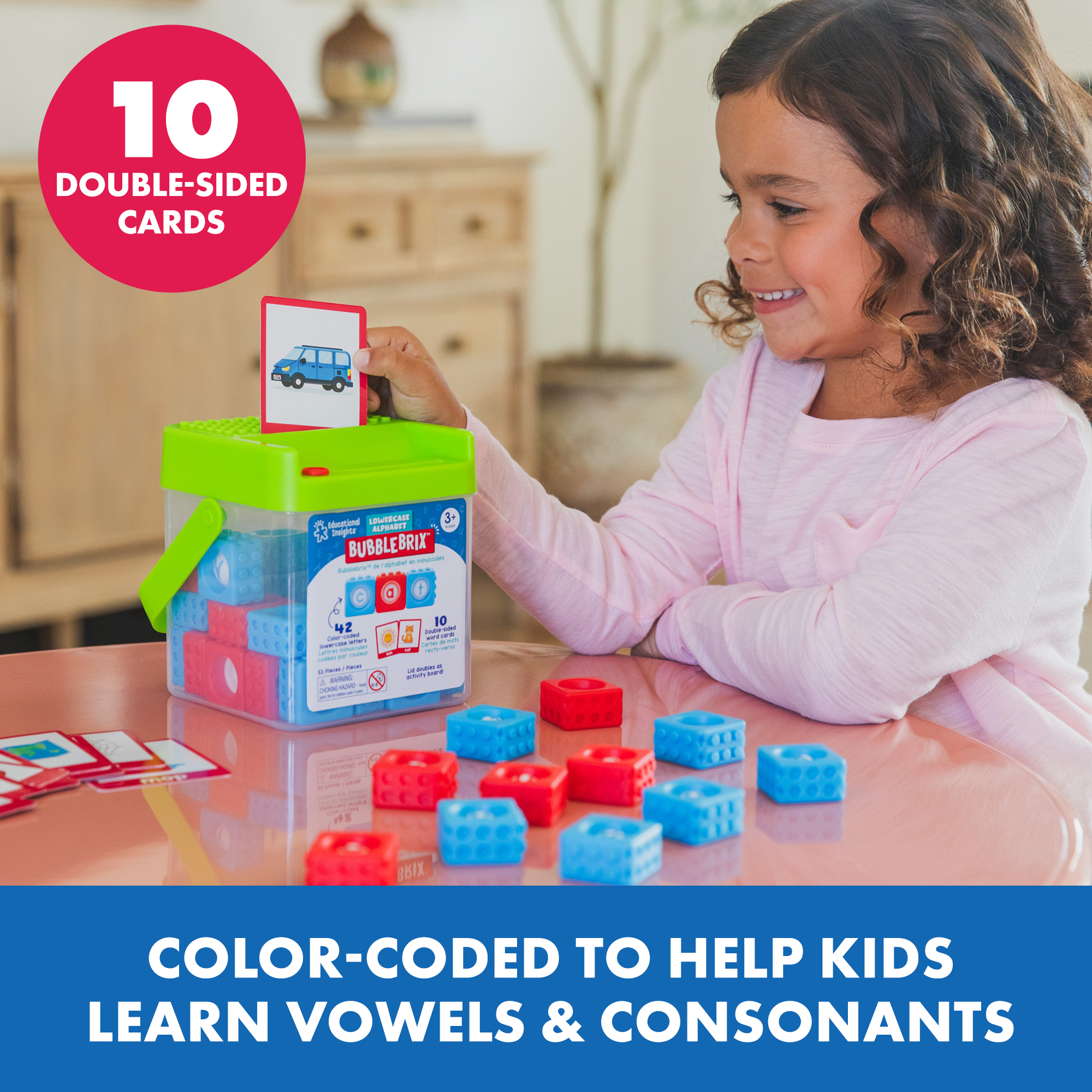 SKU 2597 Product Title Lowercase Alphabet BubbleBrix Brand Name Educational Insights UPC 086002025975 Piece Count 0 Min Target Age 3 Max Target Age 6 TargetGradeMax First Grade TargetGradeMin Pre-K ProductCategoryProductLine Bubblebrix ProductCategorySubject Language & Letters Port of Exit VNHPH Country of Origin VNM Unit Height 5.5 Unit Length 4.8 Unit Weight 1.3 Unit Width 5 Long Description - DC Combine fidget toys with letter learning! Lowercase Alphabet BubbleBrix help kids learn letter names, letter sounds, and spelling skills as they snap-together blocks to spell words. The lid doubles as an activity board so kids can practice spelling activities on their own. Great for tactile, hands-on play that reinforces learning. Includes 42 color-coded, lowercase letter BubbleBrix, 10 double-sided CVC word cards, and storage bucket with lid that doubles as a CVC and blending activity board. For ages 3+. CA prop 65 No Case Height 6.4 Case Length 11.4 Case Quantity 6 Case Weight 8.8 CPQ 0.7 Includes Remote No Marble Warning No MSRP 24.99 Small Ball Warning No Small Parts Warning Yes