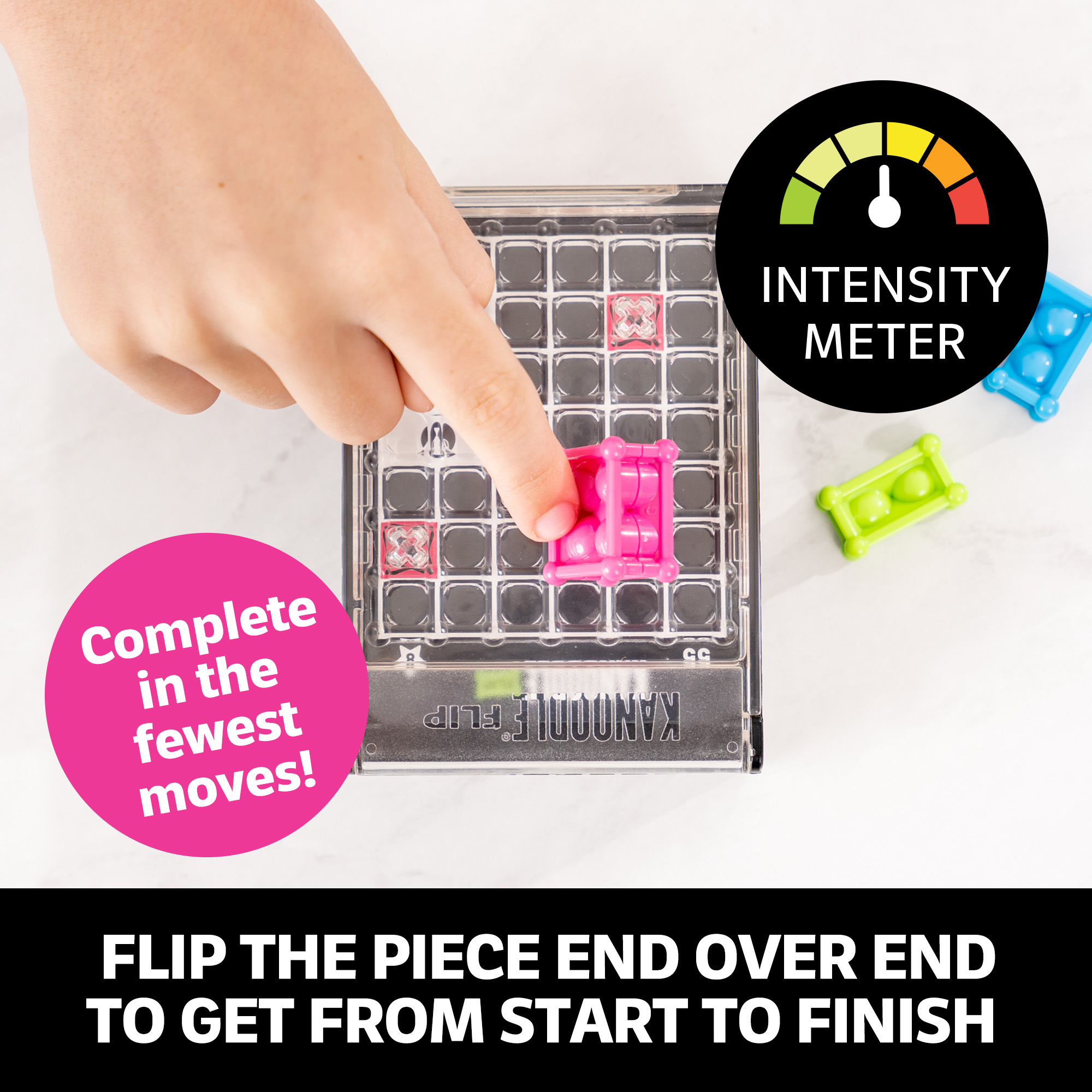 SKU 2998 Product Title KANOODLE FLIP Brand Name Educational Insights UPC 086002006455 Piece Count 4 Min Target Age 7 Max Target Age 11 TargetGradeMax Sixth Grade TargetGradeMin Second Grade ProductCategoryProductLine Kanoodle ProductCategorySubject Games Port of Exit TWKEL Country of Origin TWN Unit Height 1.5 Unit Length 5.5 Unit Weight 0.4 Unit Width 3.2 Short Description - DC Get ready to bend your brain with Kanoodle Flip! Spark more confidence and challenge your critical thinking skills with the best-selling, addictive TikTok sensation, brain-bending puzzle game! Flip the pieces end-over-end to get from the starting point to the finish in as few moves as possible. Sounds simple, but this radical solitaire game with the rolling pieces will turn your strategy topsy turvy! Long Description - DC Get ready to bend your brain with Kanoodle Flip! Spark more confidence and challenge your critical thinking skills with the best-selling, addictive TikTok sensation, brain-bending puzzle game! Flip the pieces end-over-end to get from the starting point to the finish in as few moves as possible. Sounds simple, but this radical solitaire game with the rolling pieces will turn your strategy topsy turvy! The latest brain-teasing solitaire game in the award-winning Kanoodle line, Kanoodle Flip includes a carrying case and game board, 3 pieces in increasingly difficult shapes, 100 puzzle challenges, and a game guide.