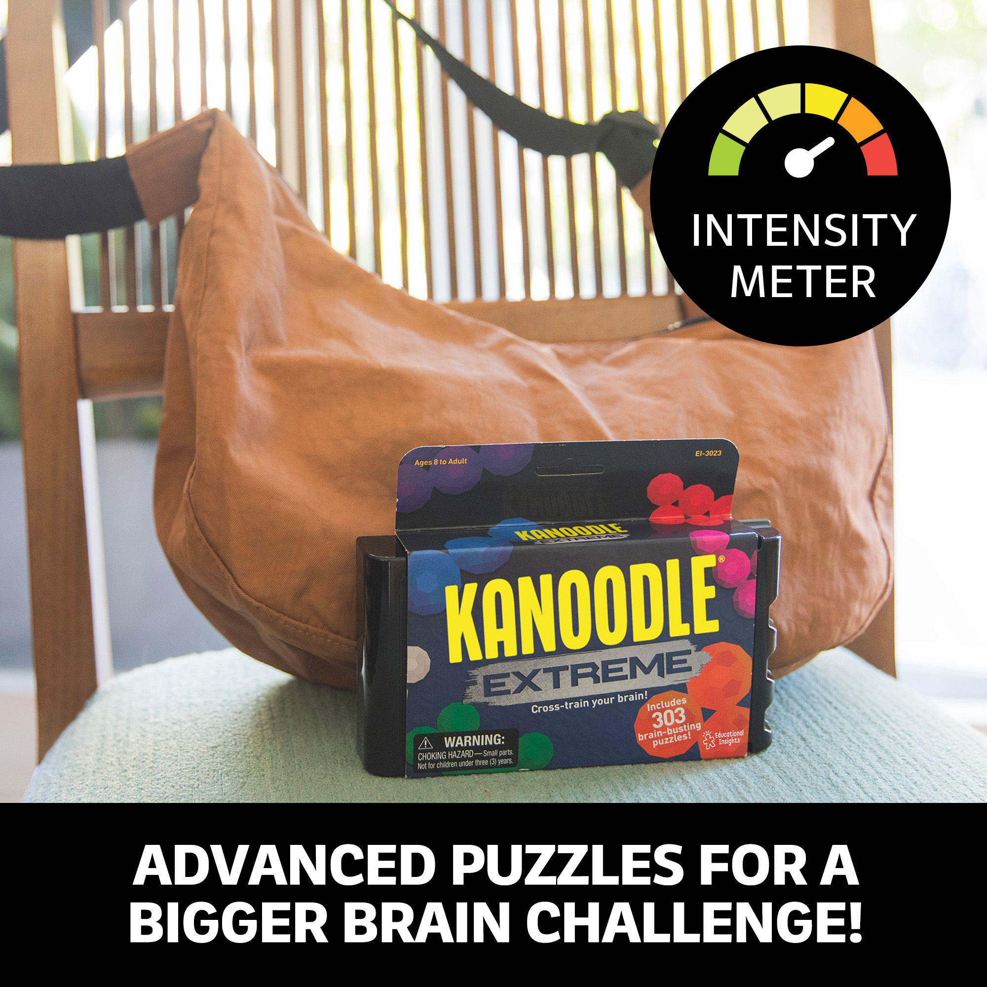 SKU 3023 Product Name Kanoodle Extreme Product Title KANOODLE EXTREME Brand Name Educational Insights UPC 086002030238 Piece Count 0 Min Target Age 8 Max Target Age 12 TargetGradeMax Seventh Grade TargetGradeMin Third Grade ProductCategoryProductLine Kanoodle ProductCategorySubject Games Port of Exit TWKEL Country of Origin TWN Unit Height 5 Unit Length 1.2 Unit Weight 0.45 Unit Width 6.62 Long Description - DC Cross-train your brain with Kanoodle Extreme from Educational Insights, an addition to the award-winning Kanoodle line of puzzle games that challenge spatial reasoning skills! Level up from the game and TikTok sensation that started it all with this mind-busting brain teaser. Pick one of 303 extra challenging puzzles (including unique sliding 2D puzzles!), set it up on the board, and place the remaining pieces to solve. Pocket-sized carrying case can go wherever you go; play anytime, anywhere! Brainteasers are a great way to improve cognitive skills like problem-solving, spatial reasoning, and critical thinking. Use Kanoodle Extreme as a brain break at the office, between lessons in the classroom, or for entertainment at home or on the road. CA prop 65 No Case Height 12.3 Case Length 18.4 Case Quantity 72 Case Weight 39.2 CPQ 2.07 Includes Remote No Marble Warning No MSRP 17.99 Small Ball Warning No Small Parts Warning Yes