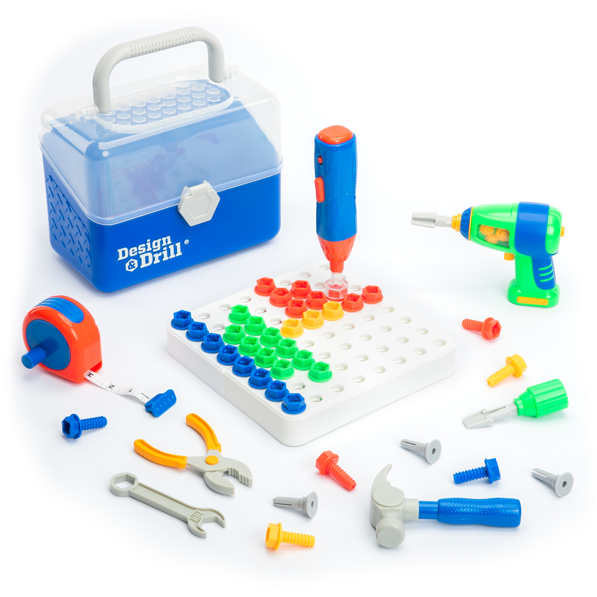 SKU 4165 Product Title DESIGN & DRILL TOOLBOX Brand Name Educational Insights UPC 086002041654 Piece Count 78 Min Target Age 3 Max Target Age 6 TargetGradeMax First Grade TargetGradeMin Toddler ProductCategoryProductLine Design & Drill ProductCategorySubject Engineering & Construction Port of Exit CNYTN Country of Origin CHN Unit Height 5.8 Unit Length 9.1 Unit Weight 3.05 Unit Width 7.8 Short Description - DC Drill, hammer, measure, and more with the Design & Drill Toolbox packed with real, working tools made safe just for kids. Little builders can power up pretend play and work on important fine motor skills with every tool. Store the included drilling boards, bolts, nails, and tools in the toolbox and take it anywhere fun goes for hours of construction creativity! Power drill and power screwdriver each require 2 AA batteries (not included). Long Description - DC Drill, hammer, measure, and more with the Design & Drill Toolbox packed with real, working tools made safe just for kids. Little builders can power up pretend play and work on important fine motor skills with every tool. Store the included drilling boards, bolts, nails, and tools in the toolbox and take it anywhere fun goes for hours of construction creativity! Power drill and power screwdriver each require 2 AA batteries (not included). CA prop 65 No Case Height 9.2 Case Length 23.8 Case Quantity 4 Case Weight 13.25 CPQ 1.29 Includes Remote No Marble Warning No MSRP 69.99 Small Ball Warning No Small Parts Warning Yes