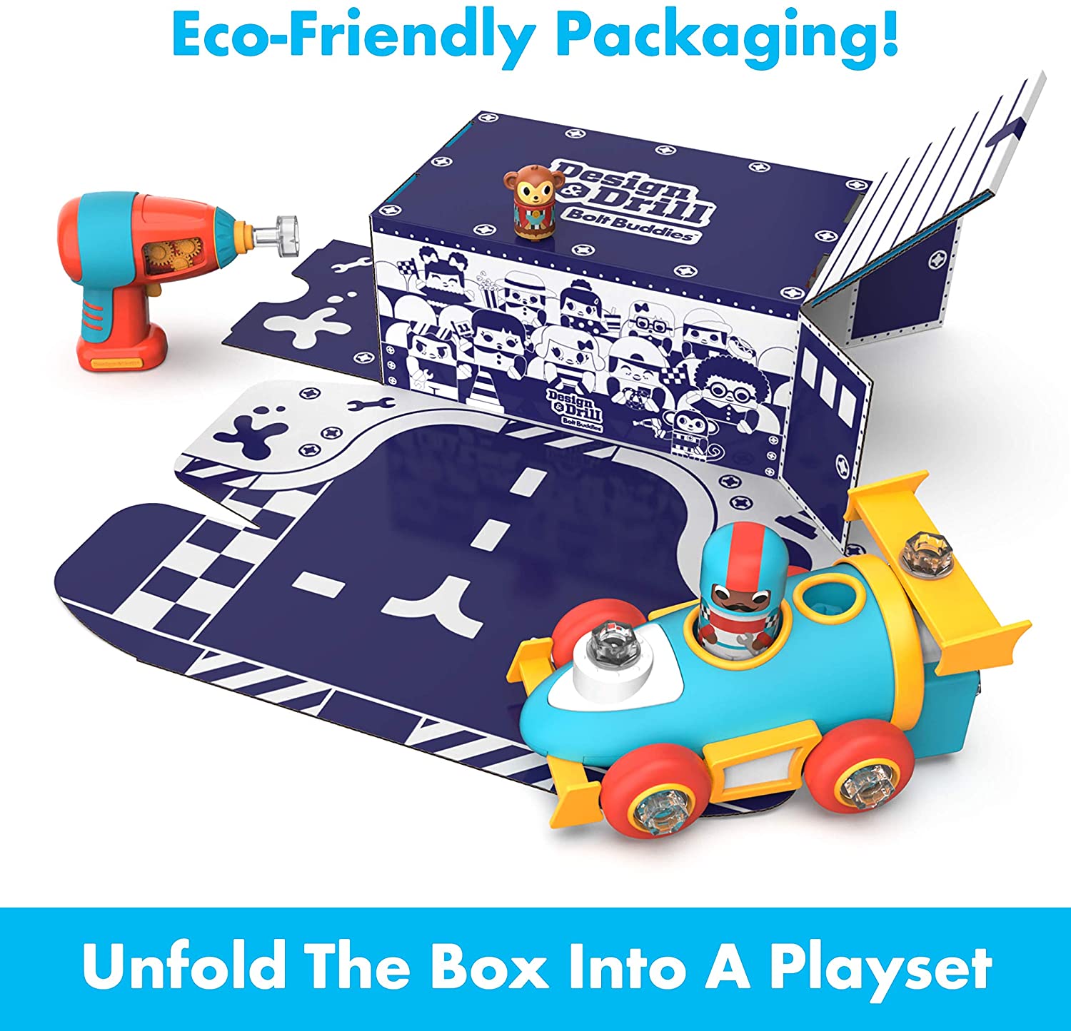 SKU 4186 Product Title DESIGN & DRILL BOLT BUDDIES RACE CAR Brand Name Educational Insights UPC 086002041869 Piece Count 18 Min Target Age 3 Max Target Age 7 TargetGradeMax Second Grade TargetGradeMin Toddler ProductCategoryProductLine Design & Drill ProductCategorySubject Engineering & Construction Port of Exit CNYTN Country of Origin CHN Unit Height 4.6 Unit Length 6.2 Unit Weight 1.8 Unit Width 10.3 Short Description - DC Kids use a real, working, kid-safe drill to build the Race Car, then drop the Bolt Buddy driver and his and monkey pit crew pal into the driver’s seat for some revved up pretend play fun! Long Description - DC Kids use a real, working, kid-safe drill to build the Race Car, then drop the Bolt Buddy driver and his and monkey pit crew pal into the driver’s seat for some revved up pretend play fun! CA prop 65 No Case Height 7 Case Length 19 Case Quantity 4 Case Weight 7.9 CPQ 0.83 Includes Remote No Marble Warning No MSRP 31.99 Small Ball Warning No Small Parts Warning Yes