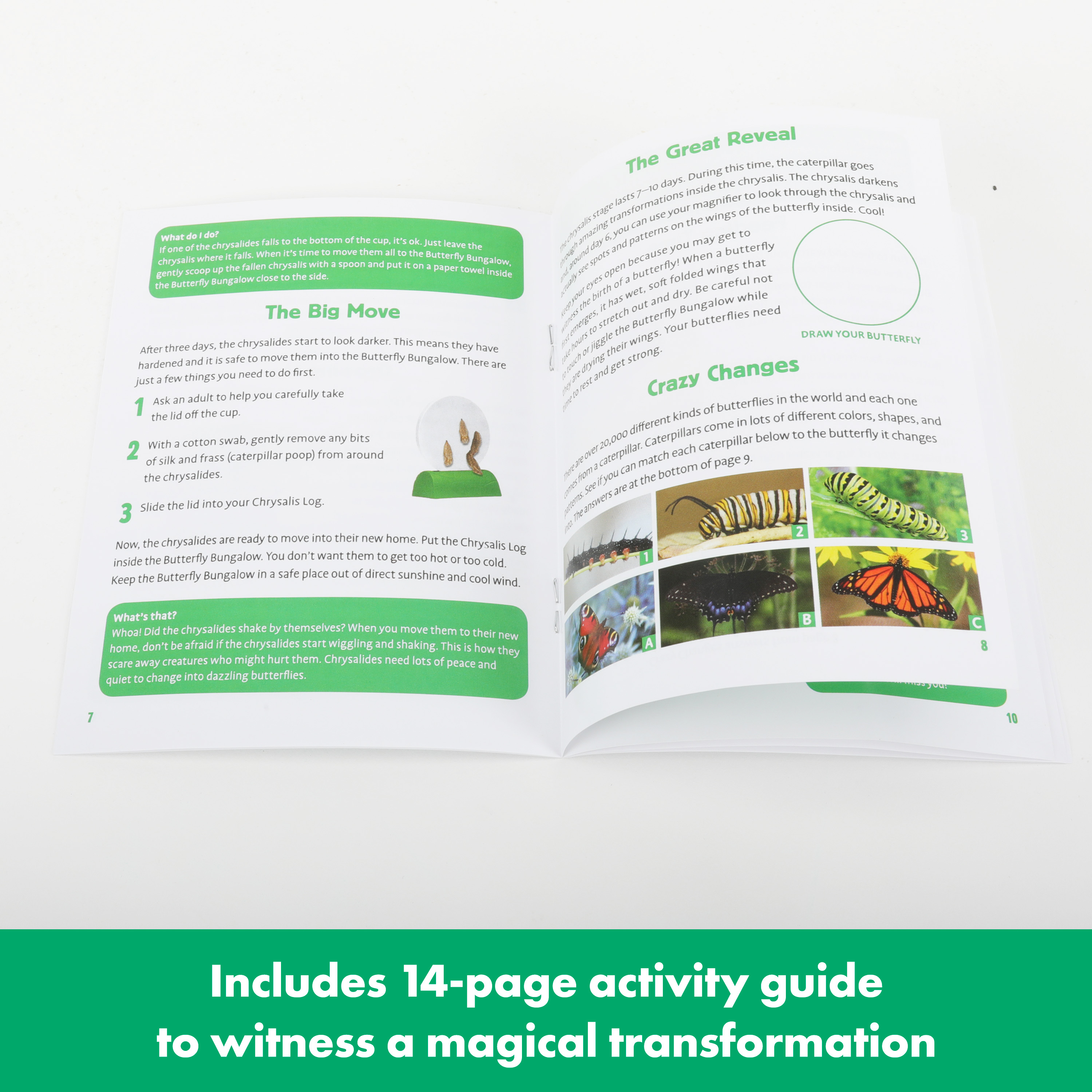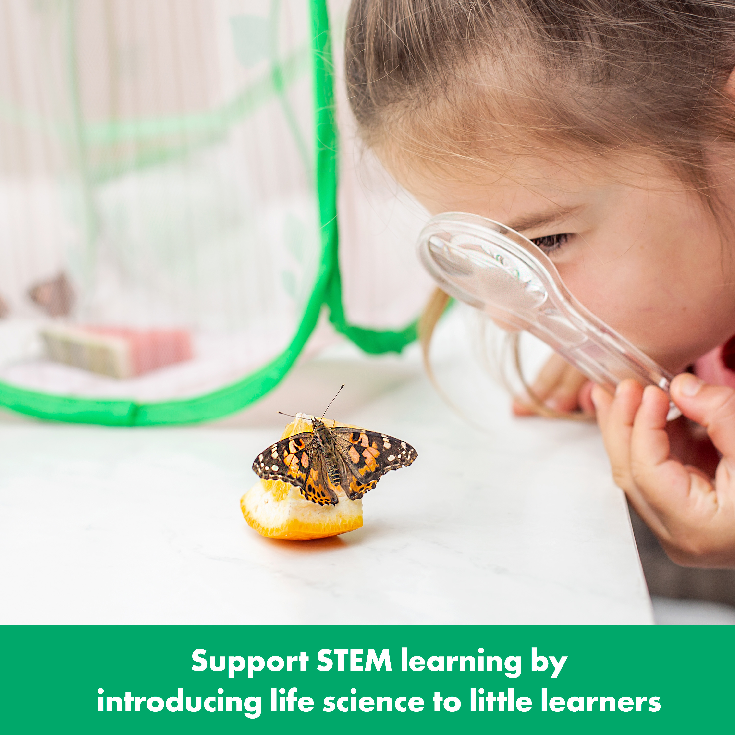SKU 5085 Product Name GeoSafari Jr. Butterfly Bungalow Product Title GEOSAFARI® JR. BUTTERFLY BUNGALOW Brand Name Educational Insights UPC 086002050854 Piece Count 0 Min Target Age 3 Max Target Age 7 TargetGradeMax Second Grade TargetGradeMin Toddler ProductCategoryProductLine GeoSafari ProductCategorySubject Science/STEM Port of Exit CNYTN Country of Origin CHN Unit Height 2.5 Unit Length 11.6 Unit Weight 0.65 Unit Width 9.4 Long Description - DC Raise and release butterflies, from start to finish with the Butterfly Bungalow! Simply follow the instructions on the caterpillar certificate to receive your caterpillars, then watch as they cocoon in the habitat and emerge as Painted Lady Butterflies. With the included magnifying glass, you’ll see every amazing step in detail! CA prop 65 No Case Height 10.5 Case Length 12.2 Case Quantity 4 Case Weight 3.55 CPQ 0.8 Includes Remote No Marble Warning No MSRP 25.99 Small Ball Warning No Small Parts Warning No