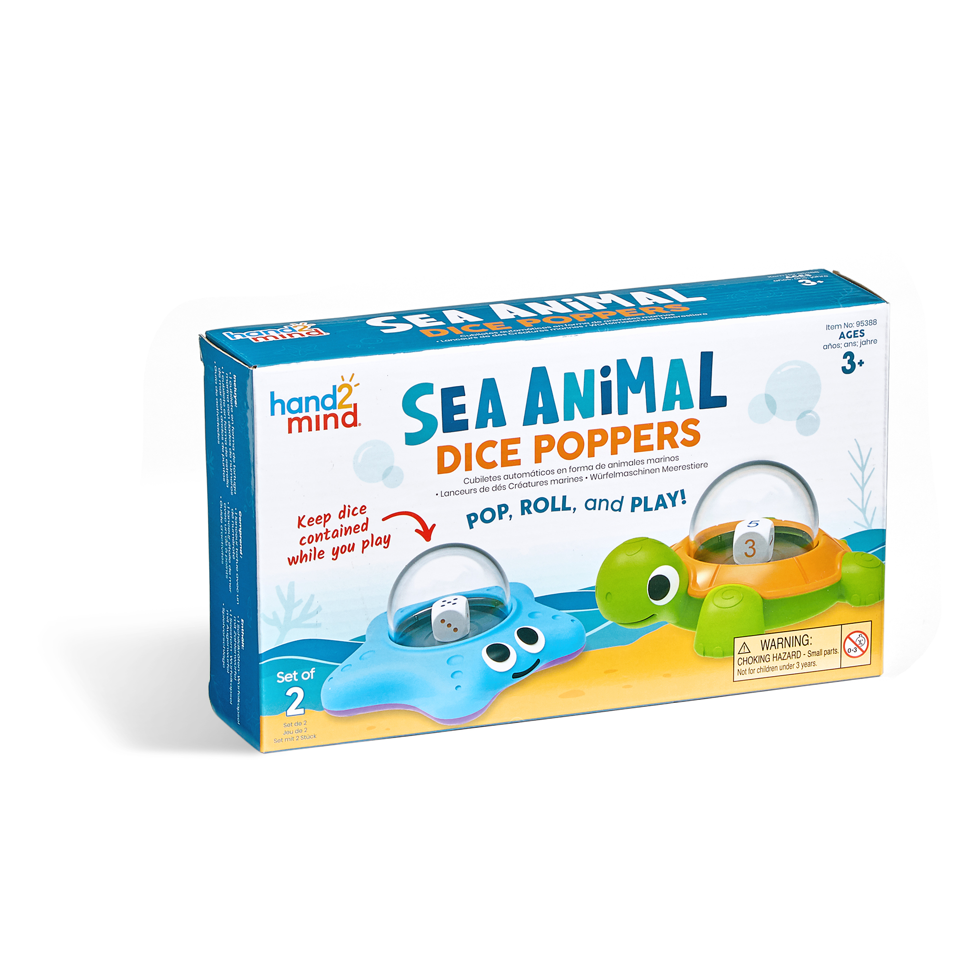 SKU 95388 Product Title Sea Animal Dice Poppers Brand Name hand2mind UPC 848850119530 Piece Count 0 Min Target Age 3 Max Target Age 4 TargetGradeMax Pre-K TargetGradeMin Pre-K ProductCategoryProductLine Dice ProductCategoryProductType Manipulative - Individual/Student ProductCategorySubject Math Country of Origin CHN Unit Height 2.12 Unit Length 9.25 Unit Weight 0.1 Unit Width 5.5 Short Description - DC These adorable dice poppers are great replacements for loose dice in activity sets, board games, or worksheet lessons. They can also be used on their own. Designed with children in mind, the durable, self-contained dice poppers eliminate the frustration of losing the dice. CA prop 65 No Case Height 10.3 Case Length 11.3 Case Quantity 12 Case Weight 5.75 CPQ 0.92 Includes Remote No Marble Warning No MSRP 15.99 Small Ball Warning No Small Parts Warning No