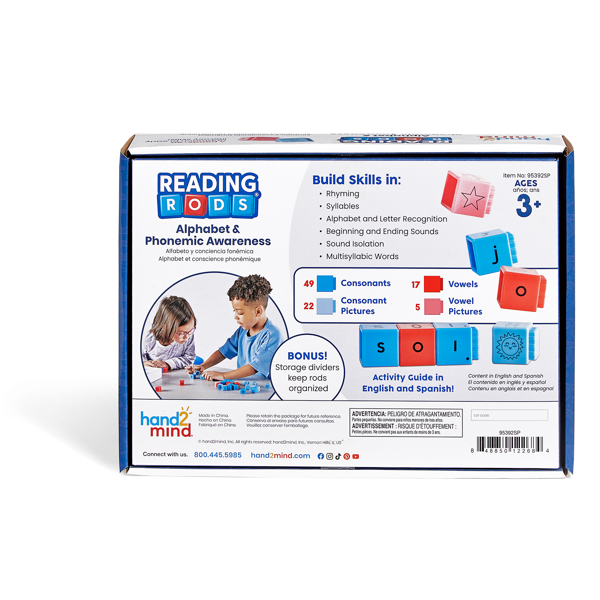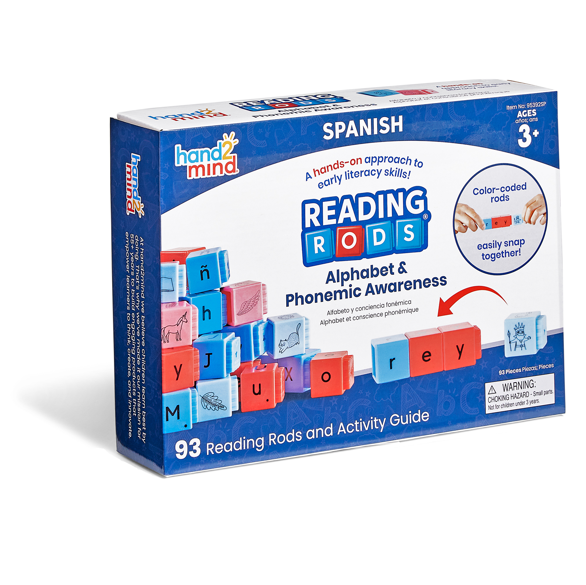 SKU 95392SP Product Title Reading Rods® (Spanish): Alphabet & Phonemic Aware Brand Name hand2mind UPC 848850122684 Piece Count 0 Min Target Age 3 Max Target Age 8 TargetGradeMax Third Grade TargetGradeMin Pre-K ProductCategoryProductLine Reading Rods ProductCategoryProductType Manipulative - Small Group or Center ProductCategorySubject ELA/Literacy Country of Origin CHN Unit Height 2.25 Unit Length 6.75 Unit Weight 1.08 Unit Width 9.25 CA prop 65 No Case Height 13.9 Case Length 9.9 Case Quantity 12 Case Weight 13.9 CPQ 1.09 Includes Remote No Marble Warning No MSRP 27.99 Small Ball Warning No Small Parts Warning No