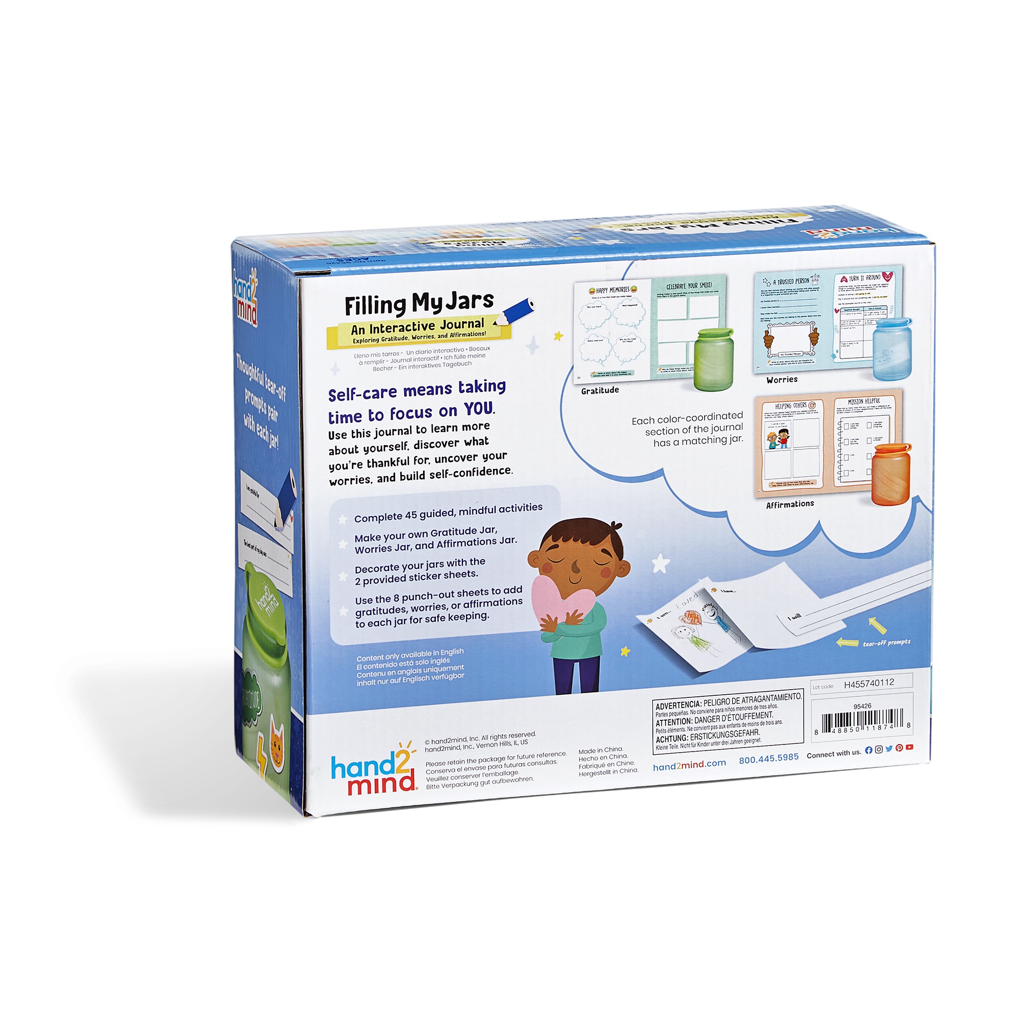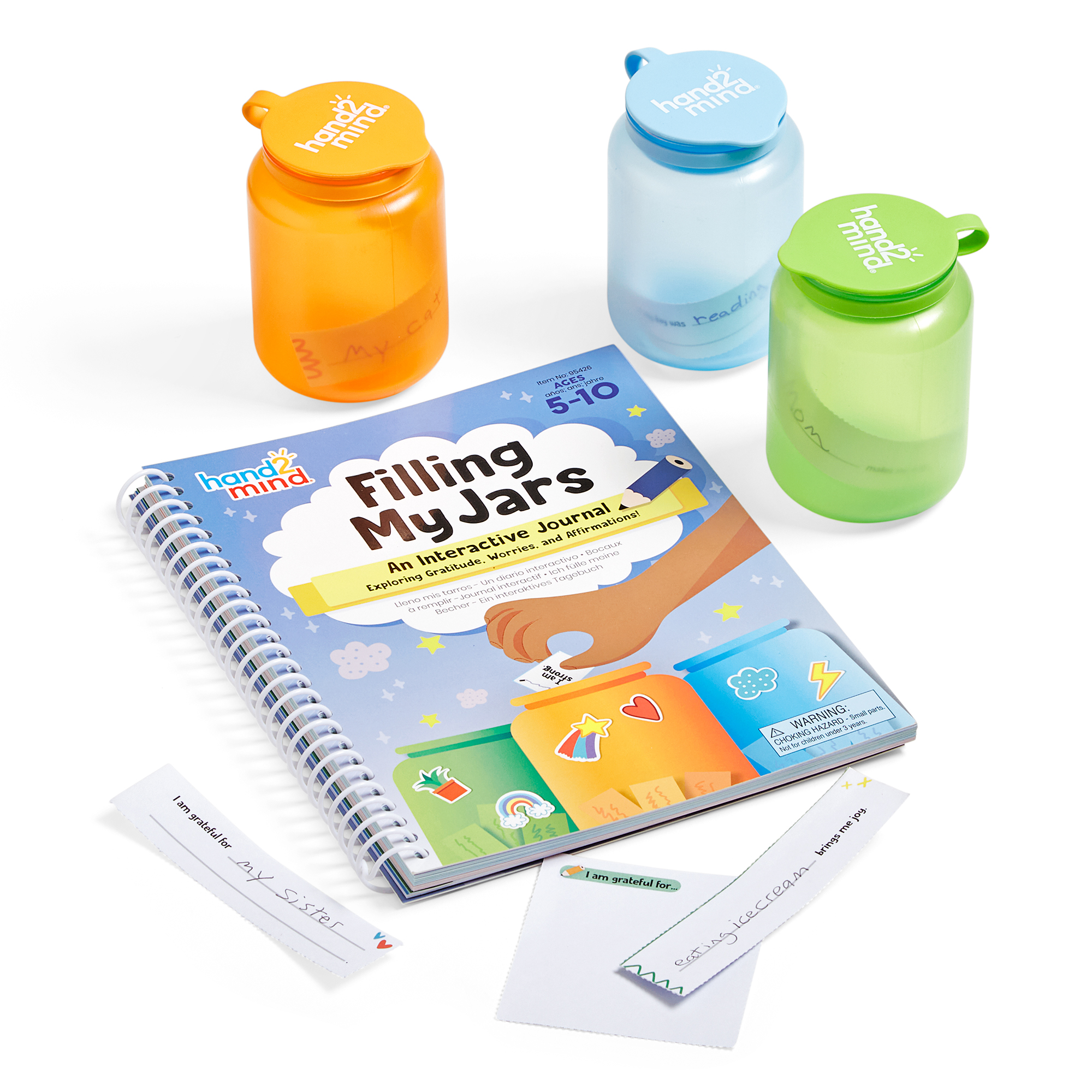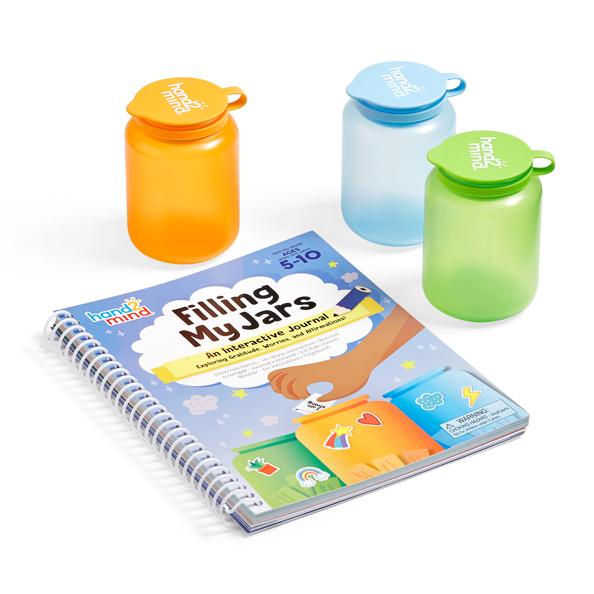 SKU 95426 Product Title Filling My Jars Interactive Journal Brand Name hand2mind UPC 848850118748 Piece Count 0 Min Target Age 5 Max Target Age 10 TargetGradeMax Fifth Grade TargetGradeMin Kindergarten ProductCategoryProductLine Mindfulness ProductCategoryProductType Educational Toy ProductCategorySubject Social-Emotional Learning Country of Origin CHN Unit Height 4 Unit Length 9.3 Unit Weight 1.5 Unit Width 7.7 CA prop 65 No Case Height 6 Case Length 12 Case Quantity 12 Case Weight 17.6 CPQ 0.38 Includes Remote No Marble Warning No MSRP 21.99 Small Ball Warning No Small Parts Warning No