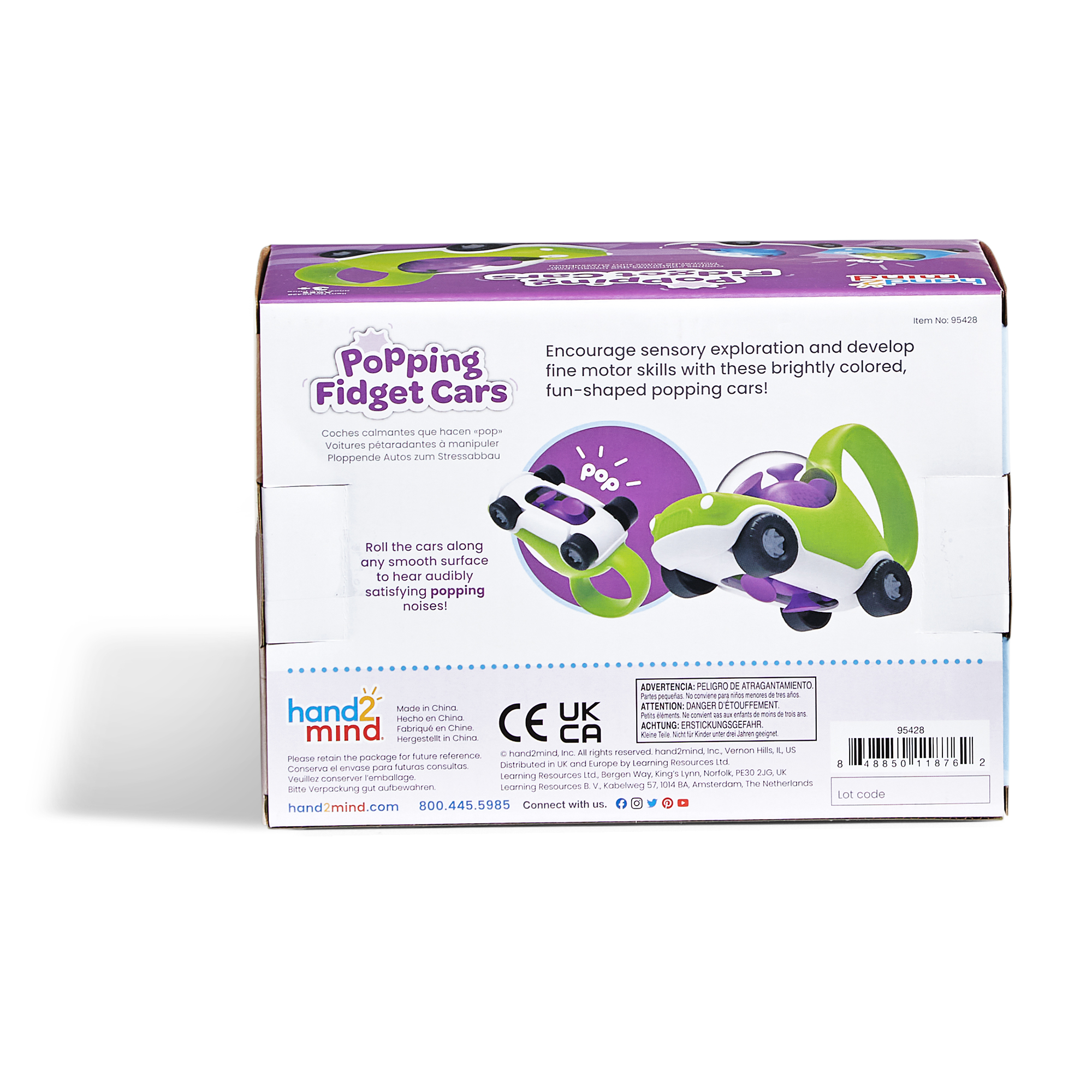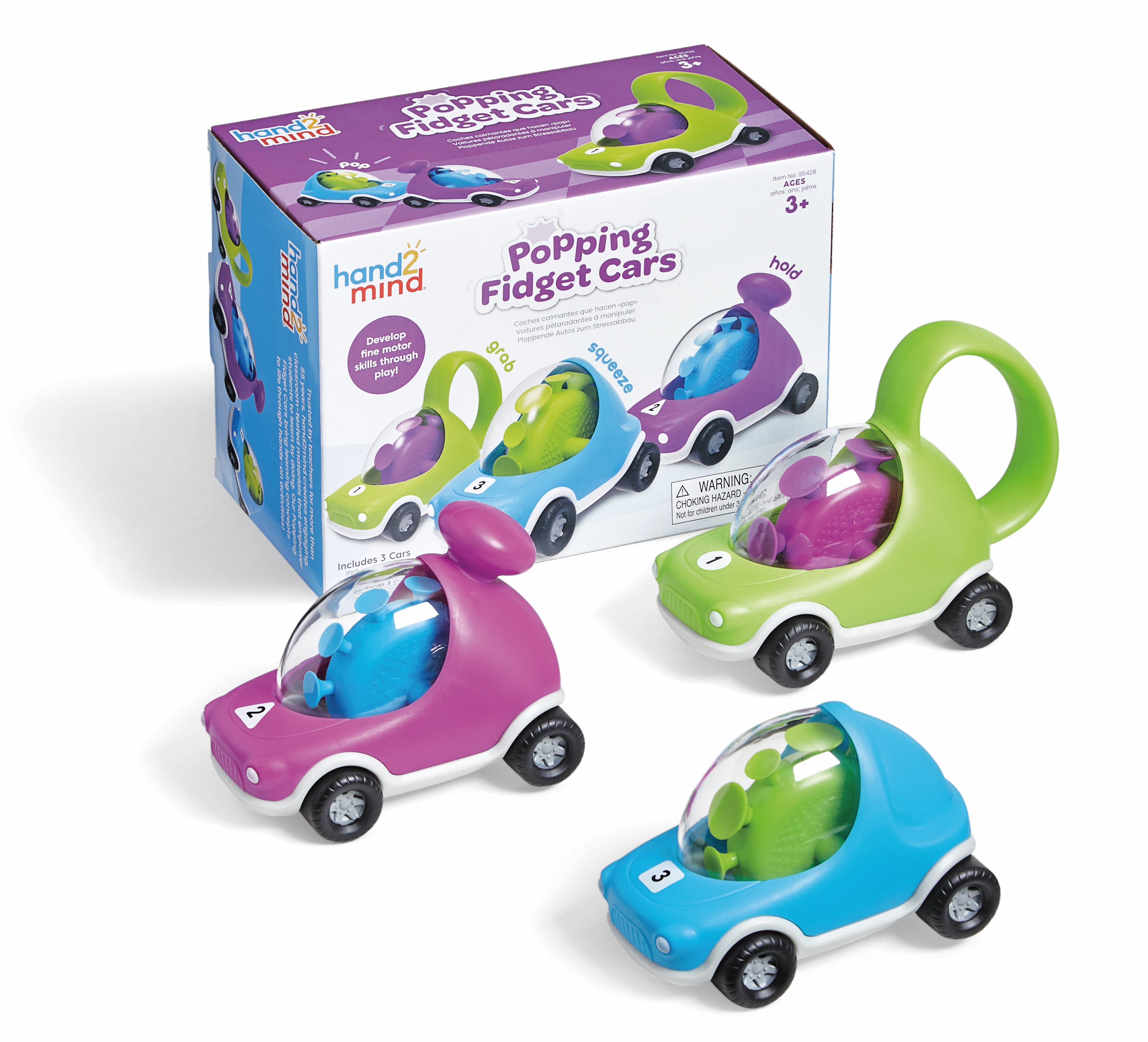 SKU 95428 Product Title Popping Fidget Cars Brand Name hand2mind UPC 848850118762 Piece Count 0 Min Target Age 3 Max Target Age 4 TargetGradeMax Pre-K TargetGradeMin Pre-K ProductCategoryProductLine Sensory and Fidget ProductCategoryProductType Educational Toy ProductCategorySubject Social-Emotional Learning Country of Origin CHN Unit Height 4.1 Unit Length 5.3 Unit Weight 0.8 Unit Width 7.5 CA prop 65 No Case Height 11.6 Case Length 13 Case Quantity 12 Case Weight 11.4 CPQ 1.34 Includes Remote No Marble Warning No MSRP 16.99 Small Ball Warning No Small Parts Warning No