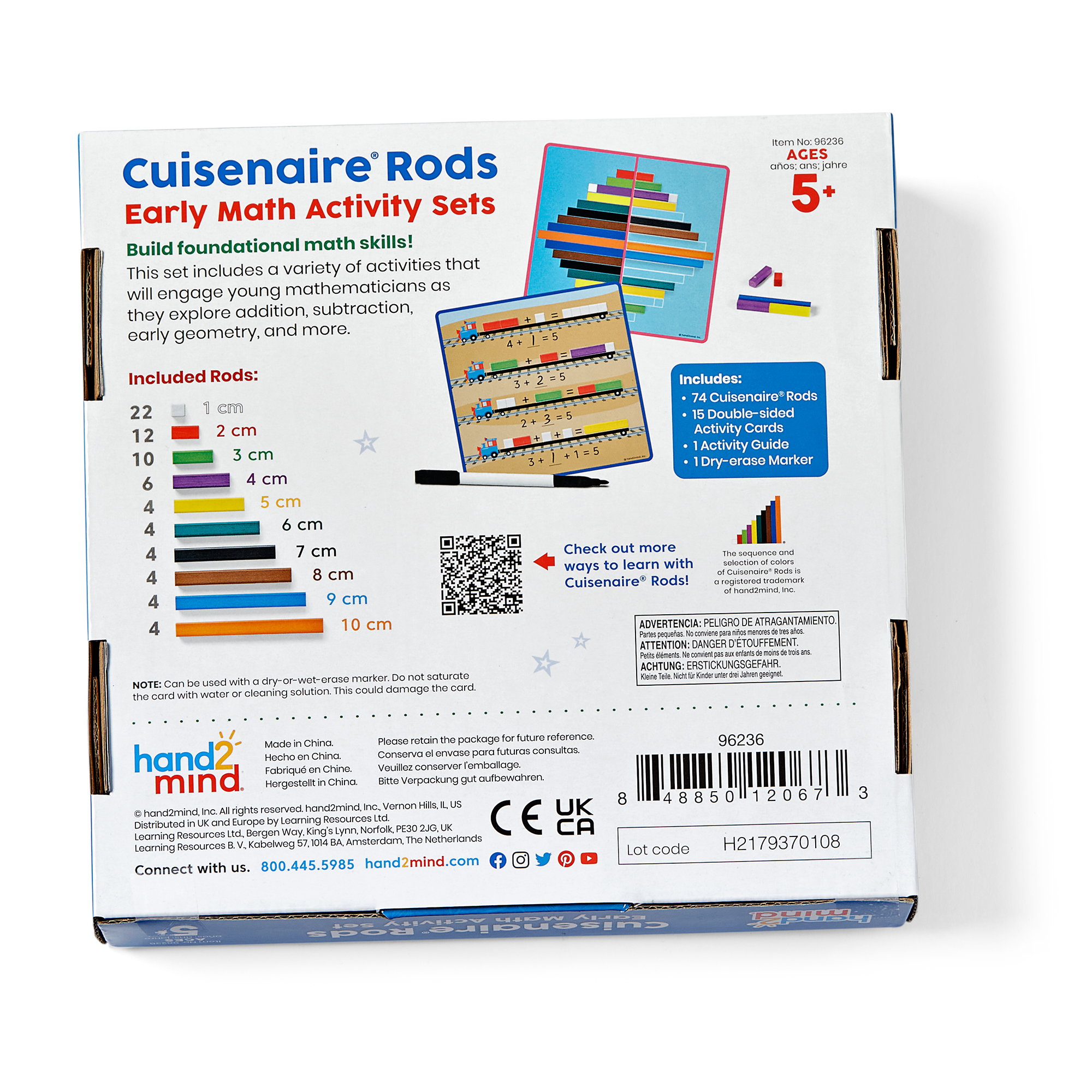 SKU 96236 Product Title Cuisenaire® Rods Early Math Activity Set Brand Name hand2mind UPC 848850120673 Piece Count 0 Min Target Age 5 Max Target Age 7 TargetGradeMax Second Grade TargetGradeMin Kindergarten ProductCategoryProductLine Cuisenaire Rods ProductCategoryProductType Educational Toy ProductCategorySubject Math Country of Origin CHN Unit Height 1.4 Unit Length 9.17 Unit Weight 0.85 Unit Width 9.1 CA prop 65 No Case Height 9.6 Case Length 9.9 Case Quantity 12 Case Weight 14.6 CPQ 1.07 Includes Remote No Marble Warning No MSRP 19.99 Small Ball Warning No Small Parts Warning No