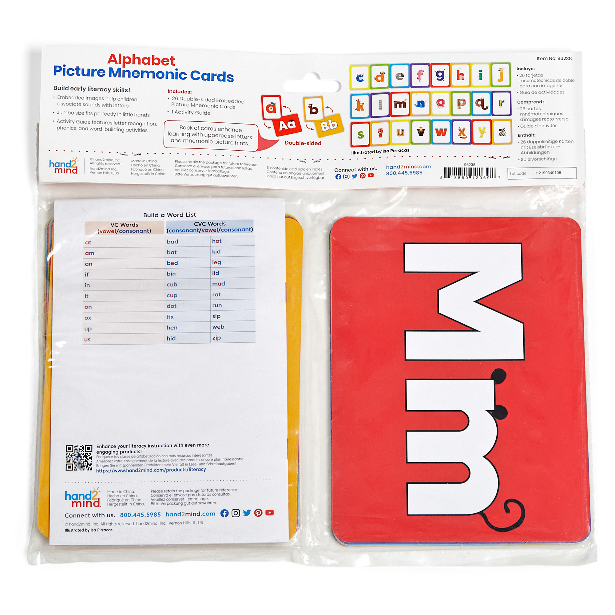 SKU 96238 Product Title Alphabet Picture Mnemonic Cards Brand Name hand2mind UPC 848850120697 Piece Count 0 Min Target Age 3 Max Target Age 6 TargetGradeMax First Grade TargetGradeMin Pre-K ProductCategoryProductLine Phonics and Phonemic Awareness ProductCategoryProductType Manipulative - Demonstration ProductCategorySubject ELA/Literacy Country of Origin CHN Unit Height 12.2 Unit Length 0.4 Unit Weight 0.8 Unit Width 8.1 CA prop 65 No Case Height 9.5 Case Length 14 Case Quantity 12 Case Weight 10.67 CPQ 0.4 Includes Remote No Marble Warning No MSRP 14.99 Small Ball Warning No Small Parts Warning No