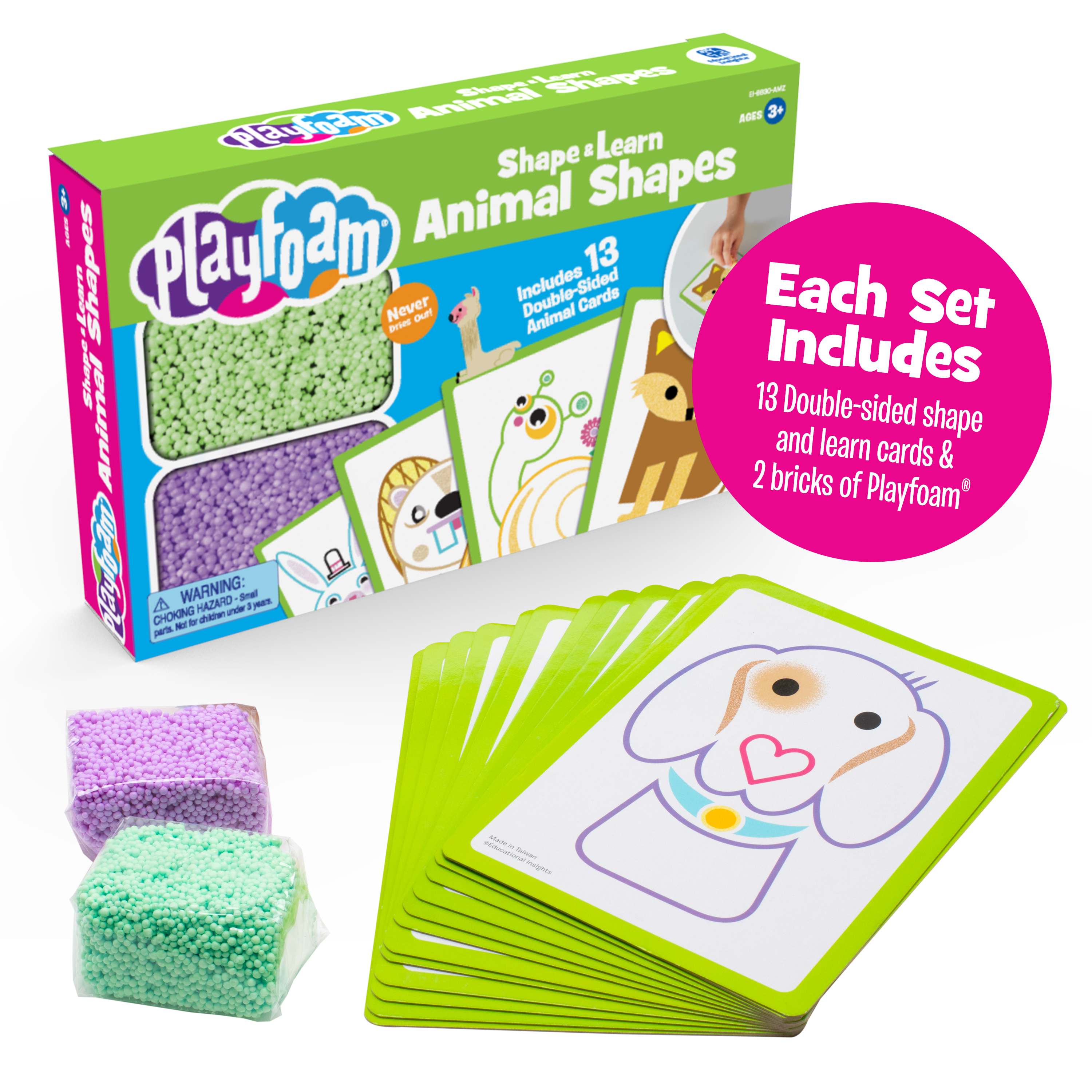 SKU 9830-AMZ Product Title PLAYFOAM® SHAPE AND LEARN 4-PACK Brand Name Educational Insights UPC 086002098306 Piece Count 0 Min Target Age 3 Max Target Age 99 TargetGradeMax No Grade TargetGradeMin Toddler ProductCategoryProductLine Playfoam ProductCategorySubject Compounds Port of Exit TWKEL Country of Origin TWN CA prop 65 No Includes Remote No Marble Warning No MSRP 19.99 Small Ball Warning No Small Parts Warning Yes