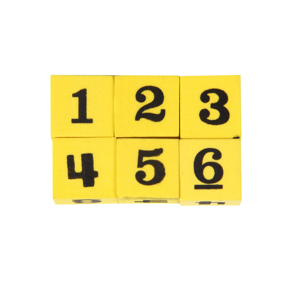 SKU H2M-312 Product Title DICE, NUMERAL, FOAM, YELLOW PK/6 Brand Name hand2mind Piece Count 0 Min Target Age 3 Max Target Age 17.9 TargetGradeMax Twelfth Grade TargetGradeMin Pre-K ProductCategoryProductLine Dice ProductCategoryProductType Manipulative - Small Group or Center ProductCategorySubject Math Port of Exit CNNGB Country of Origin CHN Unit Height 0.3 Unit Length 2.8 Unit Weight 0.5 Unit Width 1.7 CA prop 65 No Case Height 15 Case Length 17 Case Quantity 500 Case Weight 9.35 CPQ 2.07 Includes Remote No Marble Warning No MSRP 3.99 Small Ball Warning No Small Parts Warning Yes