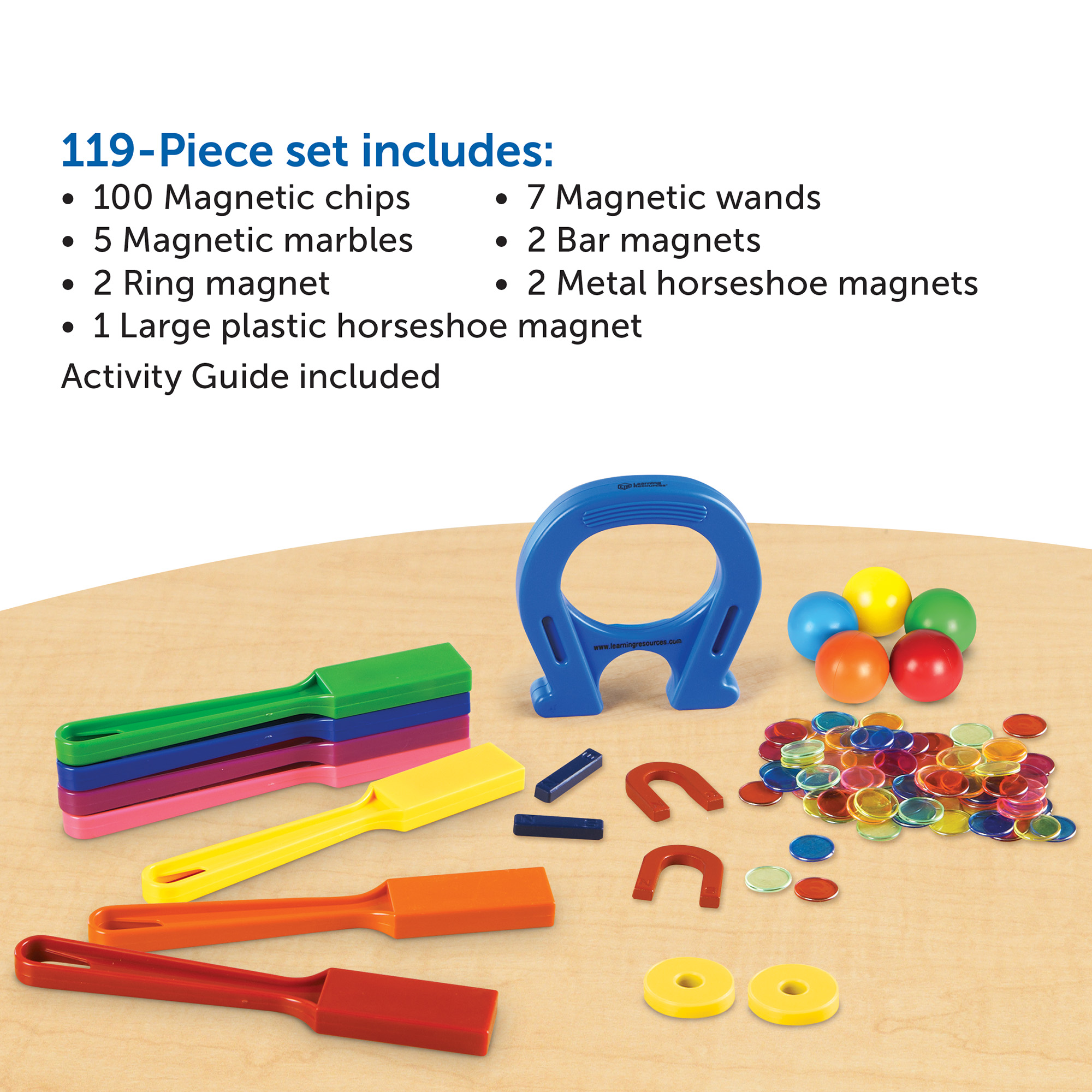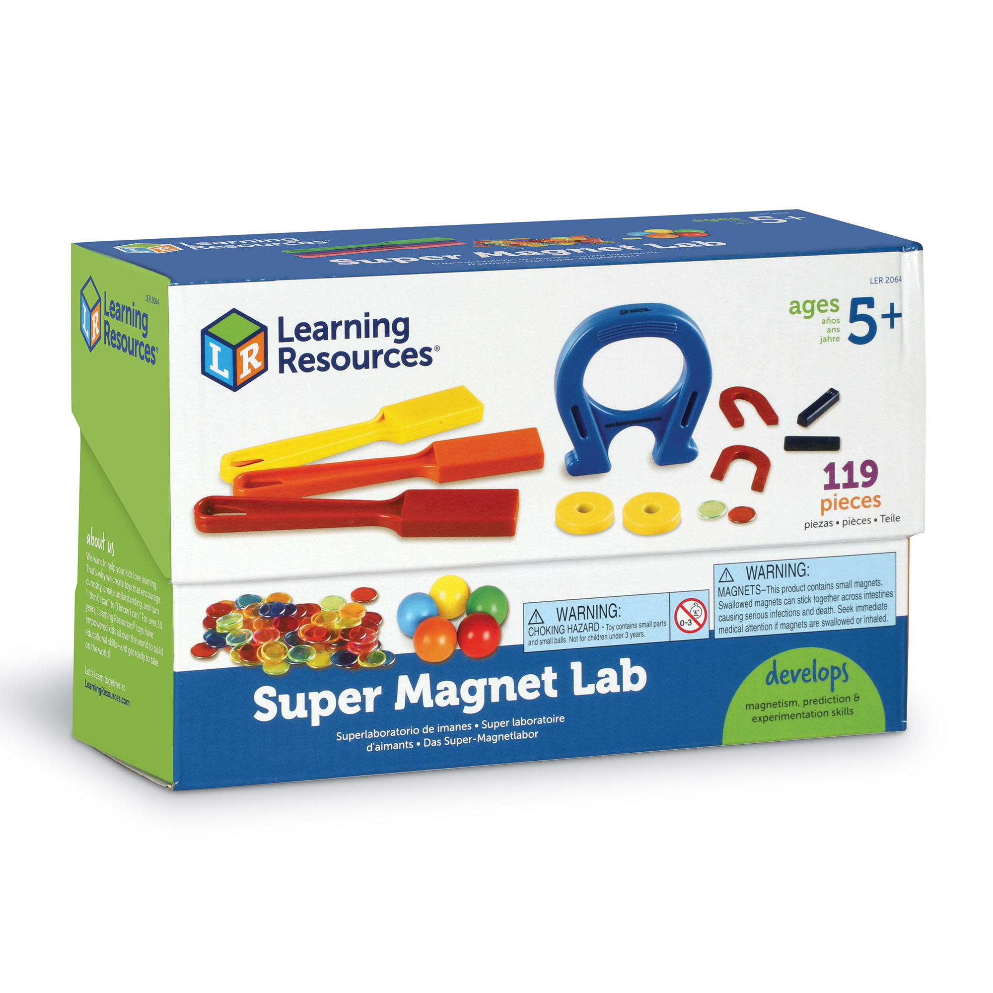SKU H2M-49856 Product Title MAGNET CLASSROOM KIT Brand Name Learning Resources UPC 848850113583 Piece Count 0 Min Target Age 5 Max Target Age 10.9 TargetGradeMax Fifth Grade TargetGradeMin Kindergarten ProductCategoryProductLine Magnets ProductCategoryProductType Manipulative - Bulk or Classroom ProductCategorySubject Science/STEM Country of Origin CHN Unit Height 5.7 Unit Length 9.2 Unit Weight 2.3 Unit Width 3.4 CA prop 65 No Case Height 12.5 Case Length 20.9 Case Quantity 12 Case Weight 28.75 CPQ 1.5 Includes Remote No Marble Warning Yes MSRP 49.99 Small Ball Warning Yes Small Parts Warning Yes