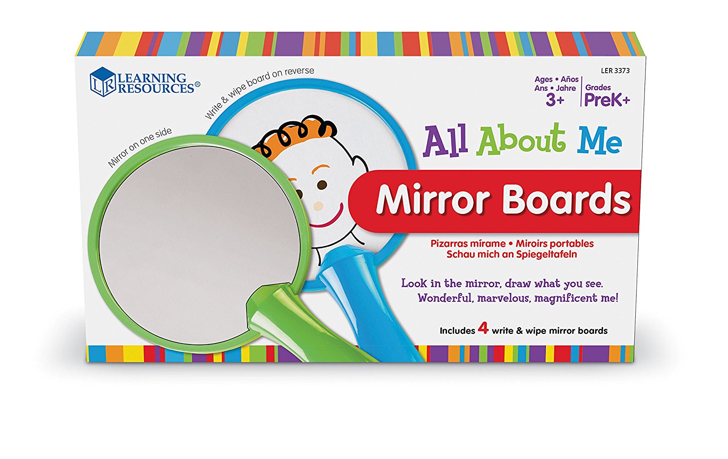 SKU H2M-67255 Product Title MIRROR BOARDS, ABOUT ME, SET/4 Brand Name Learning Resources UPC 765023833737 Piece Count 0 Min Target Age 3 Max Target Age 7.9 TargetGradeMax Second Grade TargetGradeMin Pre-K ProductCategoryProductLine Feelings and Emotions ProductCategoryProductType Educational Toy ProductCategorySubject Social-Emotional Learning Country of Origin CHN Unit Height 5 Unit Length 9 Unit Weight 0.6 Unit Width 4 CA prop 65 No Case Height 5.6 Case Length 17.6 Case Quantity 4 Case Weight 3.15 CPQ 0.66 Includes Remote No Marble Warning No MSRP 24.99 Small Ball Warning No Small Parts Warning No