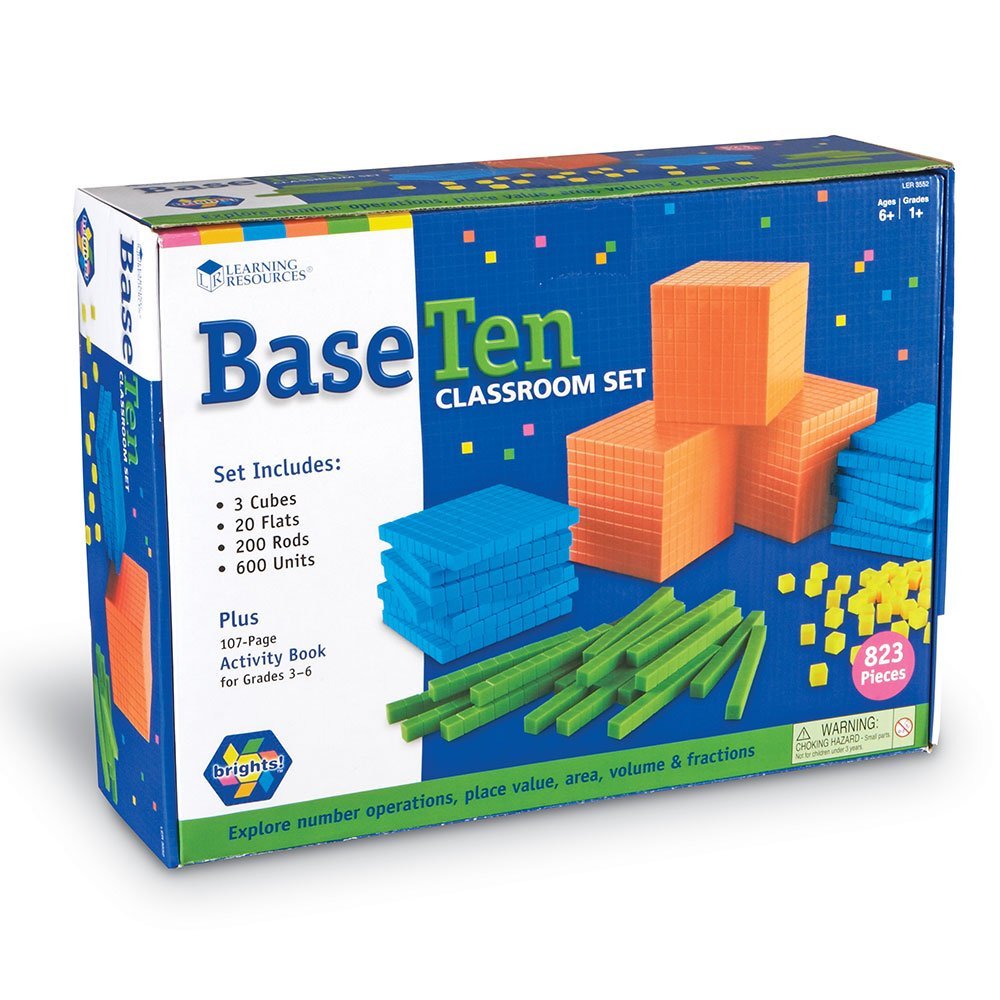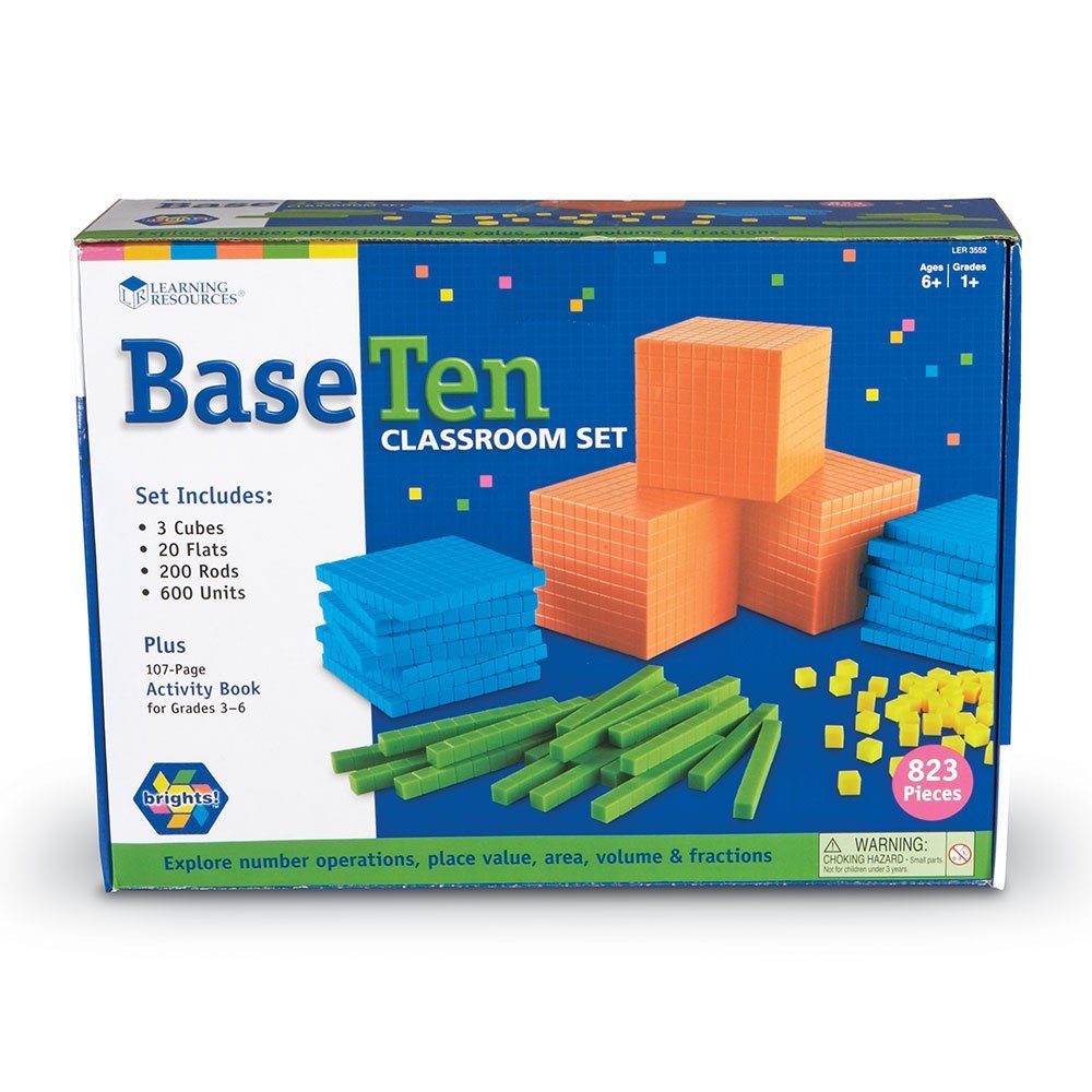 SKU H2M-67268 Product Title BASE TEN BRIGHTS, CLASSROOM SET Brand Name Learning Resources UPC 765023035520 Piece Count 0 Min Target Age 6 Max Target Age 7.9 TargetGradeMax Second Grade TargetGradeMin First Grade ProductCategoryProductLine Base Ten and Place Value ProductCategoryProductType Manipulative - Bulk or Classroom ProductCategorySubject Math Country of Origin USA Unit Height 4.8 Unit Length 15.6 Unit Weight 8.1 Unit Width 11.4 CA prop 65 No Case Height 12.4 Case Length 19.7 Case Quantity 1 Case Weight 26.1 CPQ 2.35 Includes Remote No Marble Warning No MSRP 129.99 Small Ball Warning No Small Parts Warning Yes
