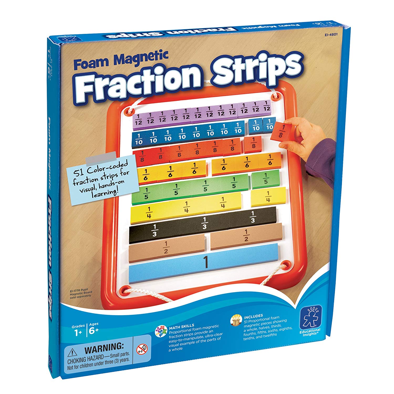 SKU H2M-77164 Product Title FRACTION STRIPS, MGNTC FOAM Brand Name Educational Insights Piece Count 0 Min Target Age 6 Max Target Age 11.9 TargetGradeMax Sixth Grade TargetGradeMin First Grade ProductCategoryProductLine Rainbow Fraction ProductCategoryProductType Manipulative - Demonstration ProductCategorySubject Math Country of Origin CHN Unit Height 1.2 Unit Length 11.7 Unit Weight 0.6 Unit Width 10.5 CA prop 65 No Case Height 12.5 Case Length 22.375 Case Quantity 24 Case Weight 18.3 CPQ 2.35 Includes Remote No Marble Warning No MSRP 21.99 Small Ball Warning No Small Parts Warning Yes