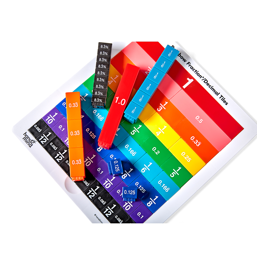 SKU H2M-78383 Product Title FRACTIONS MANIPULATIVES RES KIT Brand Name hand2mind UPC 848850110360 Piece Count 0 Min Target Age 6 Max Target Age 11.9 TargetGradeMax Sixth Grade TargetGradeMin First Grade ProductCategoryProductLine Rainbow Fraction ProductCategoryProductType Manipulative - Bulk or Classroom ProductCategorySubject Math Country of Origin USA Unit Height 12 Unit Length 19 Unit Weight 26 Unit Width 15 CA prop 65 No Case Height 12 Case Length 19 Case Quantity 1 Case Weight 26 CPQ 1.98 Includes Remote No Marble Warning No MSRP 399.99 Small Ball Warning No Small Parts Warning Yes