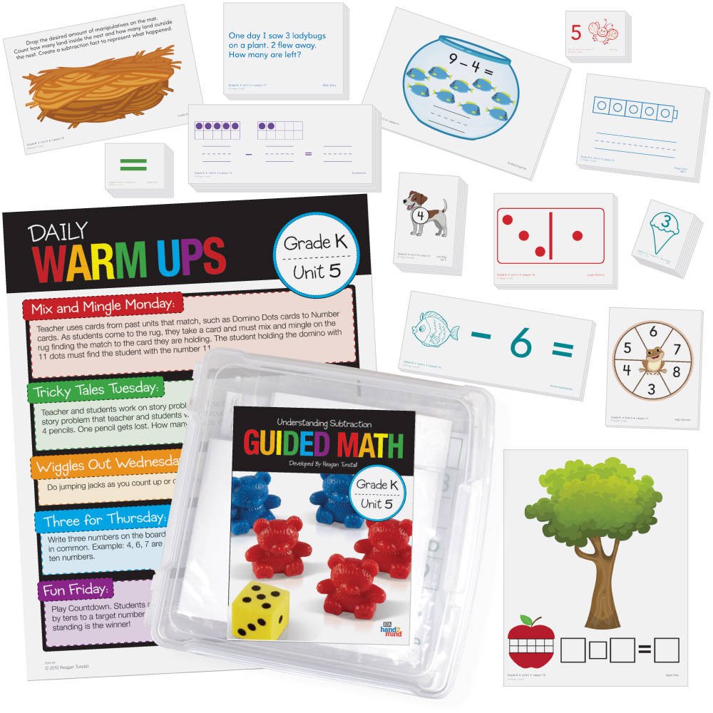 SKU H2M-86605 Product Title GUIDED MATH KIT, UNDRSTND SUBTRACT GKU5 Brand Name hand2mind UPC 848850110582 Piece Count 0 Min Target Age 5 Max Target Age 5.9 TargetGradeMax Kindergarten TargetGradeMin Kindergarten ProductCategoryProductLine Guided Math ProductCategoryProductType Instruction - Small Group ProductCategorySubject Math Country of Origin USA Unit Height 5 Unit Length 16 Unit Weight 7 Unit Width 15 CA prop 65 No Case Height 5 Case Length 16 Case Quantity 1 Case Weight 7 CPQ 0.69 Includes Remote No Marble Warning No MSRP 124.99 Small Ball Warning No Small Parts Warning No