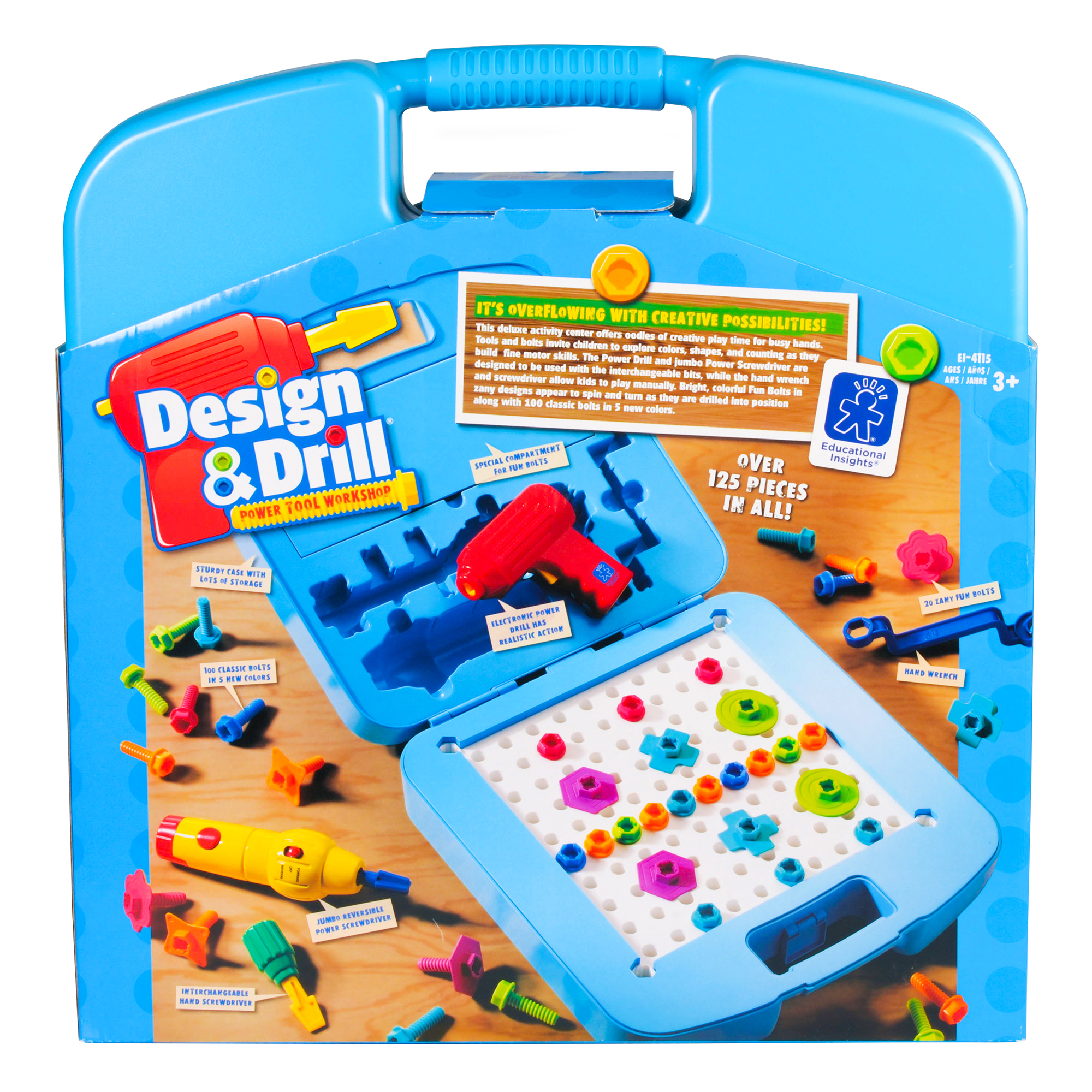 SKU H2M-87183 Product Title DESIGN & DRILL POWERTOOL WKSHP Brand Name Educational Insights UPC 086002041159 Piece Count 0 Min Target Age 3 Max Target Age 17.9 TargetGradeMax Twelfth Grade TargetGradeMin Pre-K ProductCategoryProductLine Other/Miscellaneous ProductCategoryProductType Educational Toy ProductCategorySubject Preschool Country of Origin CHN Unit Height 15.25 Unit Length 4.75 Unit Weight 7.74 Unit Width 14.4 CA prop 65 No Case Height 15.25 Case Length 4.75 Case Weight 7.74 CPQ 0.6 Includes Remote No Marble Warning No MSRP 69.99 Small Ball Warning No Small Parts Warning Yes
