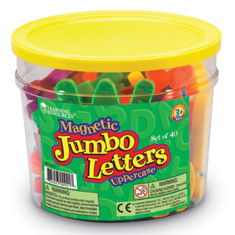 SKU H2M-87310 Product Title MAGNETIC, JUMBO U/C LETTERS Brand Name Learning Resources UPC 765023009217 Piece Count 0 Min Target Age 3 Max Target Age 17.9 TargetGradeMax Twelfth Grade TargetGradeMin Pre-K ProductCategoryProductLine Phonics and Phonemic Awareness ProductCategoryProductType Manipulative - Individual/Student ProductCategorySubject ELA/Literacy Country of Origin CHN Unit Height 7.4 Unit Length 4.7 Unit Weight 1 Unit Width 4.8 CA prop 65 No Case Height 15.6 Case Length 15.2 Case Quantity 12 Case Weight 12.55 CPQ 1.47 Includes Remote No Marble Warning No MSRP 17.99 Small Ball Warning No Small Parts Warning Yes