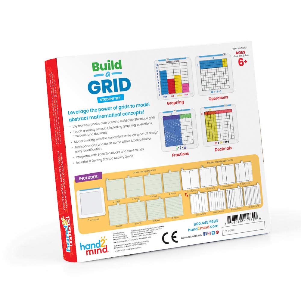 SKU H2M-92427 Product Title BUILD-A-GRID, STUDENT Brand Name hand2mind UPC 848850112890 Piece Count 0 Min Target Age 6 Max Target Age 13.9 TargetGradeMax Eighth Grade TargetGradeMin First Grade ProductCategoryProductLine Other/Miscellaneous ProductCategoryProductType Manipulative - Individual/Student ProductCategorySubject Math Port of Exit CNYTN Country of Origin CHN Unit Height 1.3 Unit Length 7.4 Unit Weight 0.9 Unit Width 7.4 CA prop 65 No Case Height 8 Case Length 8.8 Case Quantity 4 Case Weight 3.85 CPQ 0.24 Includes Remote No Marble Warning No MSRP 21.99 Small Ball Warning No Small Parts Warning No