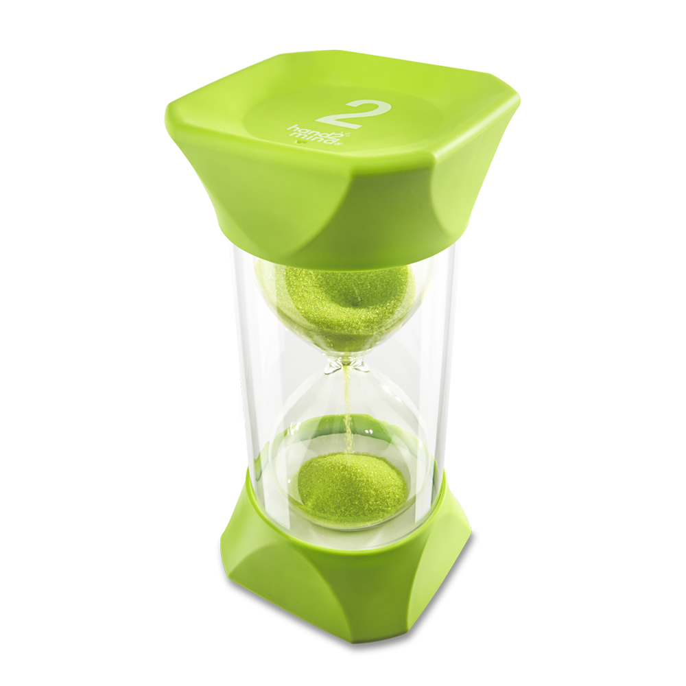 SKU H2M-93067 Product Title JUMBO SAND TIMER, 2 MIN Brand Name hand2mind UPC 848850114009 Piece Count 1 Min Target Age 3 Max Target Age 17.9 TargetGradeMax Twelfth Grade TargetGradeMin Pre-K ProductCategoryProductLine Timers ProductCategoryProductType Classroom Supplies ProductCategorySubject Math Port of Exit CNYTN Country of Origin CHN Unit Height 3.6 Unit Length 7.3 Unit Weight 0.75 Unit Width 3.6 Short Description - DC Help kids develop a stronger sense of time, productivity, and efficiency with our Jumbo Sand Timers! Kids can depict the passing of time in an engaging and calming way with this hourglass green sand timer. Watch time pass by with this colorful green 2 minute sand timer. Sized for little hands, these oversized hourglass timers are the perfect tools for teaching time management for kids. The top and bottom end cap is squared-off and made from soft rubber that offers increased durability and allows for quiet pausing of the timer. Place the sand clock sideways to pause the two minute hourglass timer. Each kids visual timer is color coded and is clearly labeled to make it easy to tell our different Jumbo Sand Timers apart. The blue timers are the 1 minute sand timers, the green are the two minute timers, the orange are the five minute timer, and the purple are the 10 minute hourglass timer. This is the perfect timer for teeth brushing, shower timer for kids, study timer, show and tell, yoga, gym time, and potty training timer. These hourglass timers are not precision timing devices, so there may be some time deviation. This set includes one jumbo 2 minute sand timer. Long Description - DC Help kids develop a stronger sense of time, productivity, and efficiency with our Jumbo Sand Timers! Kids can depict the passing of time in an engaging and calming way with this hourglass green sand timer. Watch time pass by with this colorful green 2 minute sand timer. Sized for little hands, these oversized hourglass timers are the perfect tools for teaching time management for kids. The top and bottom end cap is squared-off and made from soft rubber that offers increased durability and allows for quiet pausing of the timer. Place the sand clock sideways to pause the two minute hourglass timer. Each kids visual timer is color coded and is clearly labeled to make it easy to tell our different Jumbo Sand Timers apart. The blue timers are the 1 minute sand timers, the green are the two minute timers, the orange are the five minute timer, and the purple are the 10 minute hourglass timer. This is the perfect timer for teeth brushing, shower timer for kids, study timer, show and tell, yoga, gym time, and potty training timer. These hourglass timers are not precision timing devices, so there may be some time deviation. This set includes one jumbo 2 minute sand timer. For over 50 years, hand2mind has encouraged hands-on learning and discovery, driving deeper understanding and helping children unlock their full potential. With products designed to enhance learning in the classroom and the world around us, we strive to find new ways to encourage hands-on exploration and discovery. CA prop 65 No Case Height 8.5 Case Length 15 Case Quantity 12 Case Weight 10 CPQ 0.89 Includes Remote No Marble Warning No MSRP 19.99 Small Ball Warning No Small Parts Warning No
