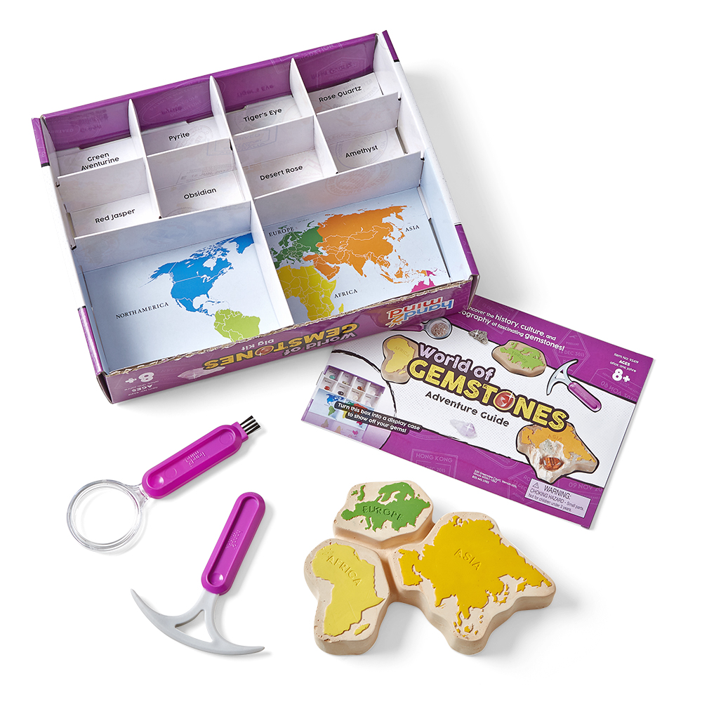 SKU H2M-93419 Product Title SCIENCE LAB KIT, WORLD OF GEMSTONES Brand Name hand2mind UPC 848850114474 Piece Count 12 Min Target Age 7 Max Target Age 13.9 TargetGradeMax Eighth Grade TargetGradeMin Second Grade ProductCategoryProductLine Consumer Science Lab Kit ProductCategoryProductType Educational Toy ProductCategorySubject Science/STEM Port of Exit CNYTN Country of Origin CHN Unit Height 2.1 Unit Length 10.5 Unit Weight 1.6 Unit Width 8.7 CA prop 65 No Case Height 18.3 Case Length 13.2 Case Quantity 12 Case Weight 20.35 CPQ 1.64 Includes Remote No Marble Warning No MSRP 24.99 Small Ball Warning No Small Parts Warning Yes