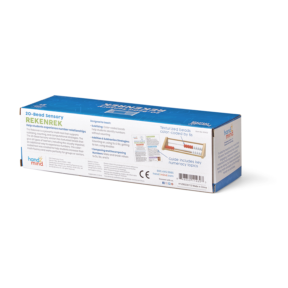 SKU H2M-93432 Product Title REKENREK, 20-BEAD, WOOD, SENSORY STUDENT Brand Name hand2mind UPC 848850114603 Piece Count 1 Min Target Age 3 Max Target Age 17.9 TargetGradeMax Twelfth Grade TargetGradeMin Pre-K ProductCategoryProductLine Rekenrek or Abacus ProductCategoryProductType Manipulative - Individual/Student ProductCategorySubject Math Port of Exit CNNGB Country of Origin CHN Unit Height 2.9 Unit Length 10.1 Unit Weight 0.5 Unit Width 2.9 CA prop 65 No Case Height 15.7 Case Length 20.9 Case Quantity 50 Case Weight 26.1 CPQ 2.96 Includes Remote No Marble Warning No MSRP 10.99 Small Ball Warning No Small Parts Warning No
