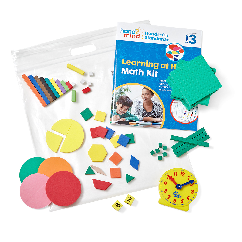 SKU H2M-93533 Product Title HOS LEARNING AT HOME MATH KIT GR 3 Brand Name hand2mind UPC 848850115051 Piece Count 395 Min Target Age 8 Max Target Age 8.9 TargetGradeMax Third Grade TargetGradeMin Third Grade ProductCategoryProductLine Learning at Home ProductCategoryProductType Instruction - Individual/Student ProductCategorySubject Math Country of Origin USA Unit Height 3 Unit Length 17 Unit Weight 1.2 Unit Width 15 CA prop 65 No Case Height 12 Case Length 24 Case Quantity 15 Case Weight 19.6 CPQ 3 Includes Remote No Marble Warning No MSRP 36.99 Small Ball Warning No Small Parts Warning No