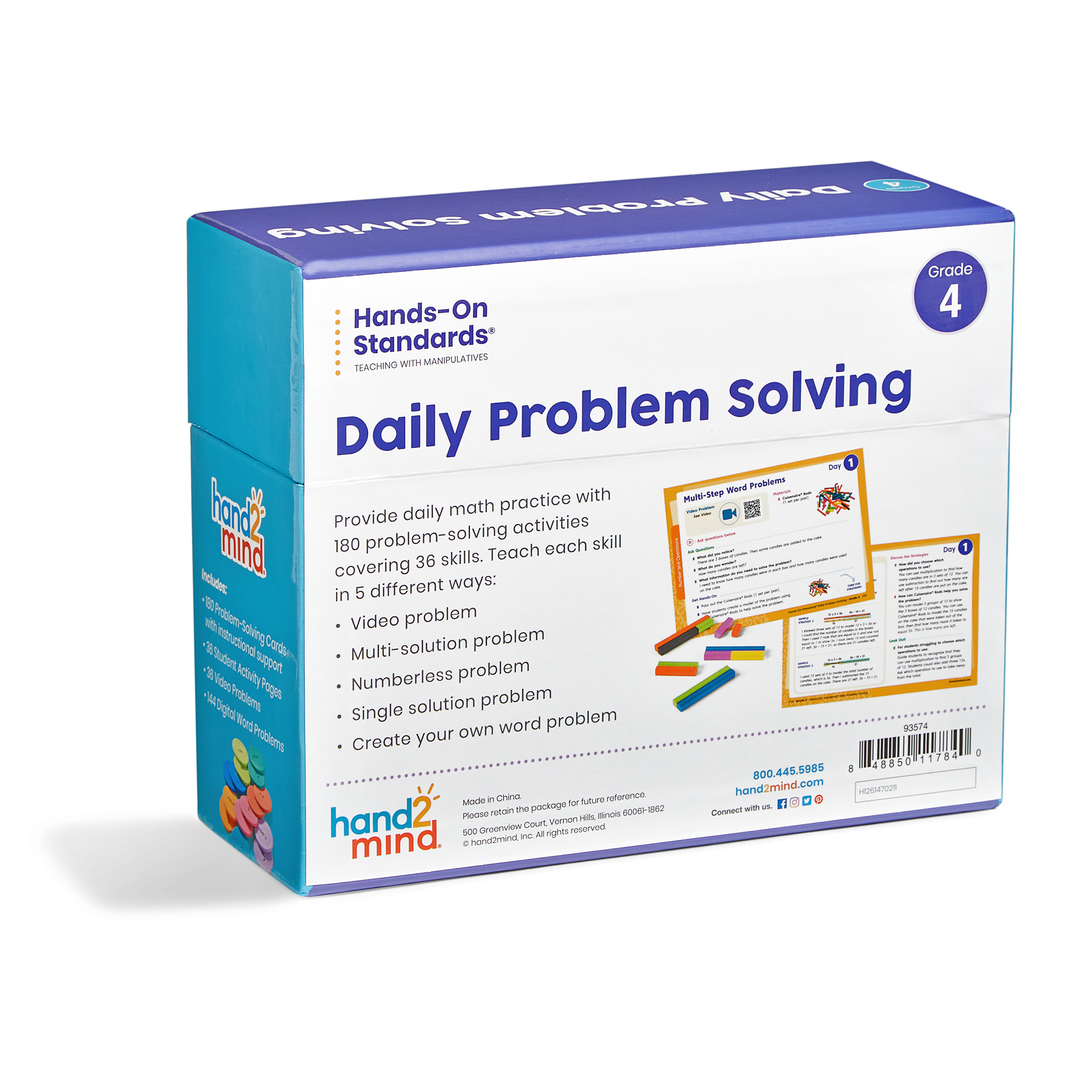SKU H2M-93574 Product Title HOS DAILY PROB SOLVNG TG GR 4 Brand Name hand2mind UPC 848850117840 Piece Count 0 Min Target Age 9 Max Target Age 9.9 TargetGradeMax Fourth Grade TargetGradeMin Fourth Grade ProductCategoryProductLine Hands-On Standards ProductCategoryProductType Instruction - Classroom ProductCategorySubject Math Port of Exit CNYTN Country of Origin CHN Unit Height 6.1 Unit Length 7.6 Unit Weight 2 Unit Width 3 CA prop 65 No Case Height 7.5 Case Length 16.1 Case Quantity 10 Case Weight 32.2 CPQ 1.12 Includes Remote No Marble Warning No MSRP 219.99 Small Ball Warning No Small Parts Warning No