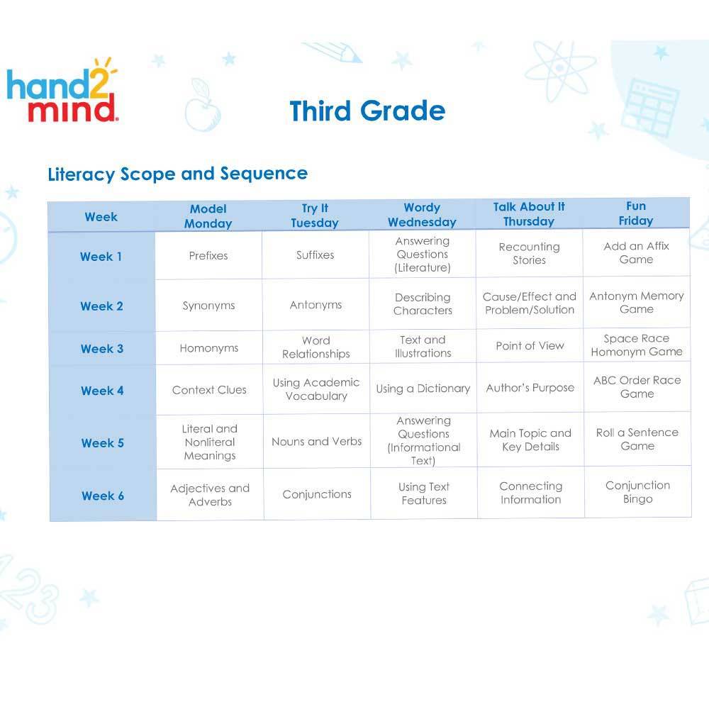 SKU H2M-93793 Product Title LEARNING AT HOME MATH & LIT KIT GR 3 Brand Name hand2mind UPC 848850116409 Piece Count 399 Min Target Age 8 Max Target Age 8.9 TargetGradeMax Third Grade TargetGradeMin Third Grade ProductCategoryProductLine Learning at Home ProductCategoryProductType Instruction - Individual/Student ProductCategorySubject Cross-Curricular Country of Origin USA Unit Height 2 Unit Length 12.2 Unit Weight 2.95 Unit Width 12.6 CA prop 65 No Case Height 12.6 Case Length 24.1 Case Quantity 12 Case Weight 27.2 CPQ 3.41 Includes Remote No Marble Warning No MSRP 66.99 Small Ball Warning No Small Parts Warning No