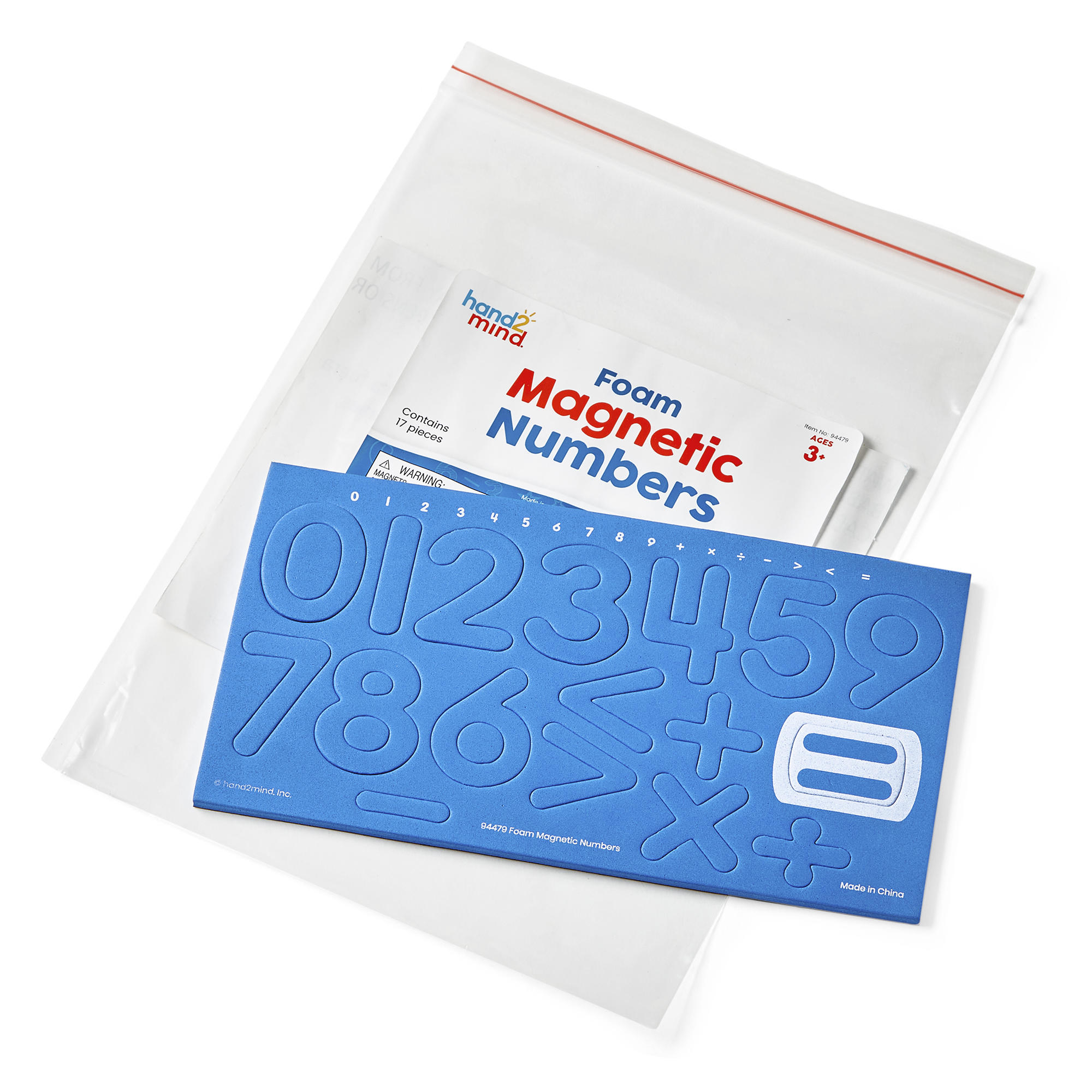 SKU H2M-94479 Product Title MAGNETIC FOAM NUMBERS 0-9 W/OPERATIONS S/16 Brand Name hand2mind UPC 848850117468 Piece Count 17 Min Target Age 3 Max Target Age 17.9 TargetGradeMax Twelfth Grade TargetGradeMin Pre-K ProductCategoryProductLine Other/Miscellaneous ProductCategoryProductType Manipulative - Individual/Student ProductCategorySubject Math Port of Exit CNNGB Country of Origin CHN Unit Height 0.2 Unit Length 11 Unit Weight 0.01 Unit Width 7.75 CA prop 65 No Case Height 12.7 Case Length 17.6 Case Quantity 60 Case Weight 14.35 CPQ 1.41 Includes Remote No Marble Warning No MSRP 2.99 Small Ball Warning No Small Parts Warning Yes