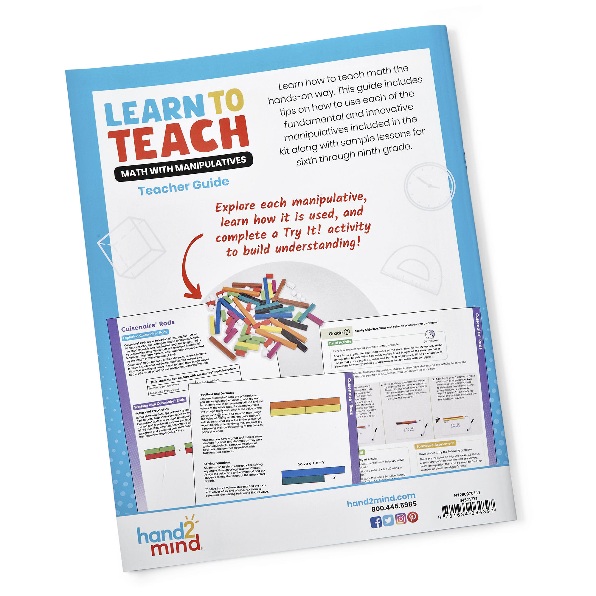 SKU H2M-94521 Product Title LEARN TO TEACH MATH W/ MANIPS 6-9 Brand Name hand2mind UPC 848850117932 Piece Count 240 Min Target Age 11 Max Target Age 14.9 TargetGradeMax Ninth Grade TargetGradeMin Sixth Grade ProductCategoryProductLine Learn to Teach ProductCategoryProductType Instruction - Small Group ProductCategorySubject Math Country of Origin USA CA prop 65 No Case Height 3.75 Case Length 16.38 Case Quantity 1 Case Weight 5 CPQ 0.51 Includes Remote No Marble Warning No MSRP 109.99 Small Ball Warning No Small Parts Warning No