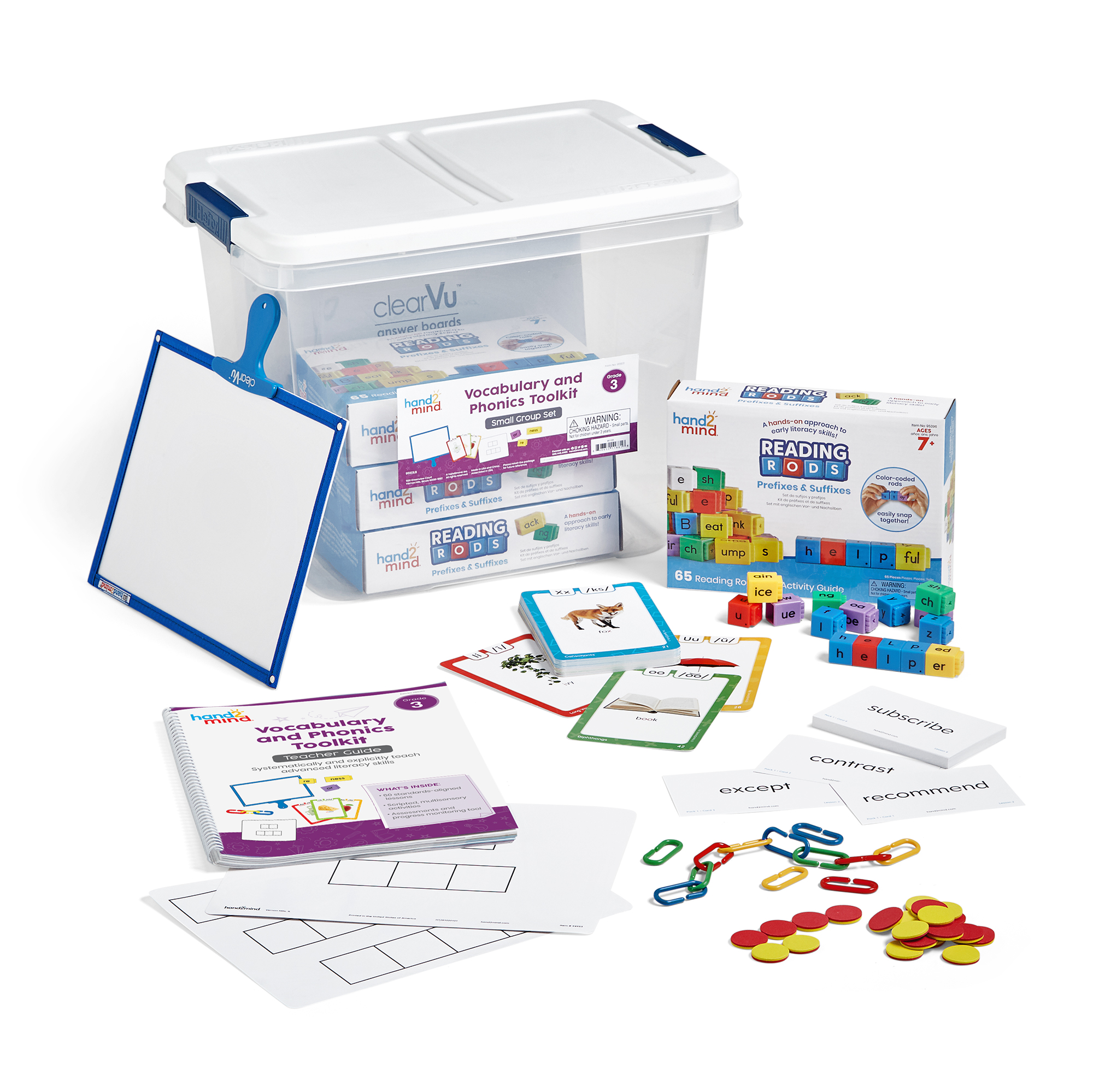 SKU H2M-95103 Product Name Vocabulary and Phonics Toolkit Small Group Set, Grade 3 Product Title Vocabulary and Phonics Toolkit Grade 3 Brand Name hand2mind Piece Count 466 Min Target Age 8 Max Target Age 8 TargetGradeMax Third Grade TargetGradeMin Third Grade ProductCategoryProductLine Vocabulary & Phonics Toolkit ProductCategoryProductType Instruction - Small Group ProductCategorySubject ELA/Literacy Country of Origin USA Unit Height 13.12 Unit Length 16.87 Unit Weight 11 Unit Width 12.12 CA prop 65 No Case Height 13.12 Case Length 16.87 Case Quantity 1 Case Weight 11 CPQ 1.55 Includes Remote No Marble Warning No MSRP 234.99 Small Ball Warning No Small Parts Warning No